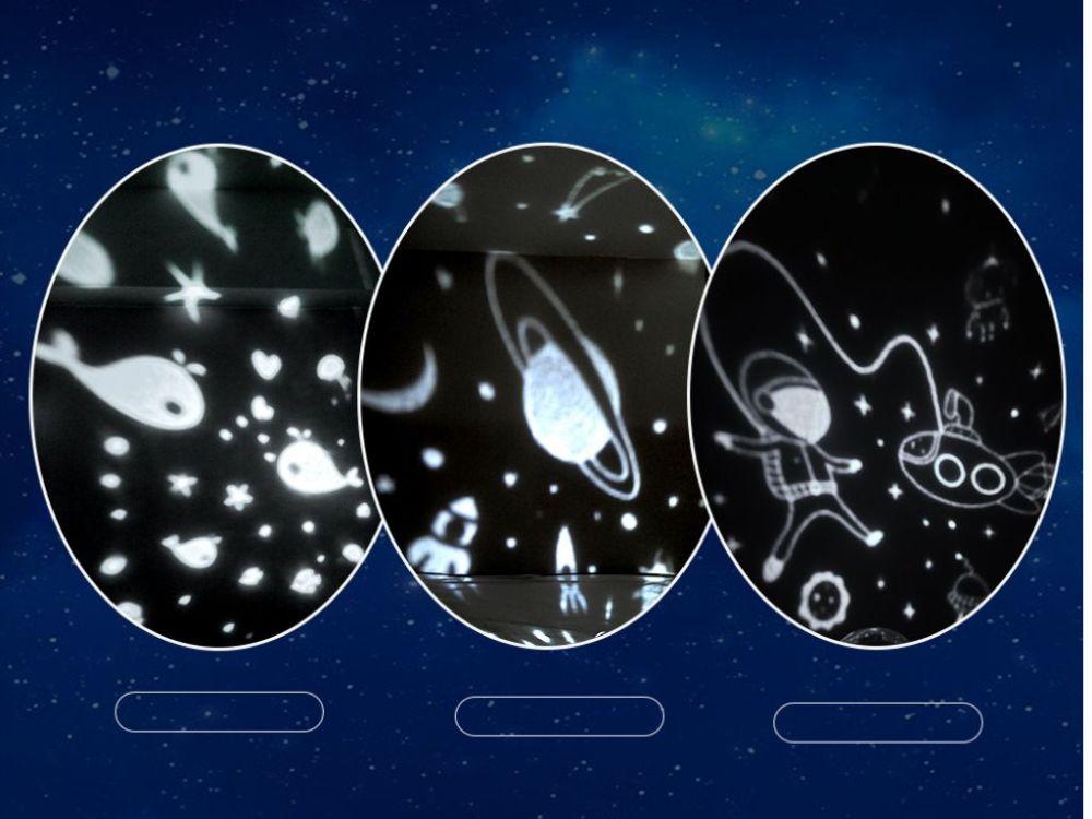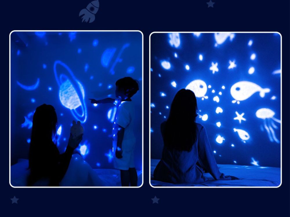 Projektor Baby Rabbit je vybavený tromi vymeniteľnými filmami, vďaka ktorým môžete ľahko meniť témy premietania a premeniť každý večer na nový zážitok.