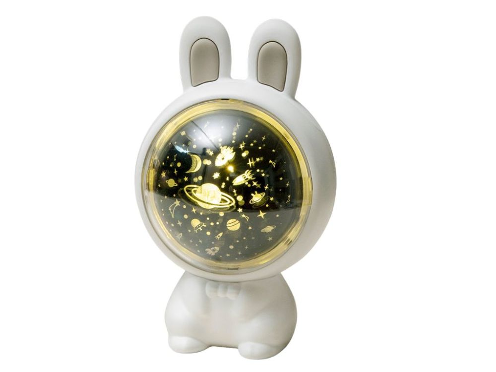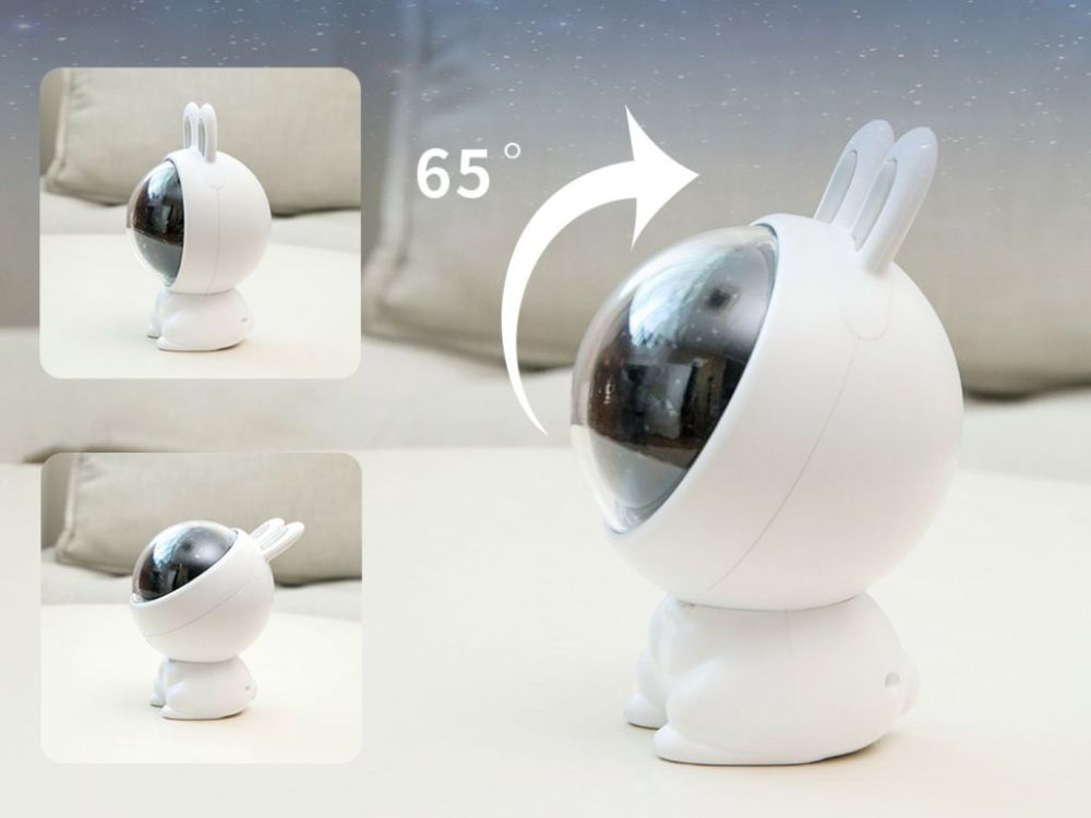Projektor ponúka tri vymeniteľné fólie a možnosť voľby režimu mäkkého svetla a RGB. Plynulé stmievanie a otočná hlava zajačika umožňujú nastaviť ideálnu atmosféru na ukolísanie, relaxáciu alebo zábavu detí.