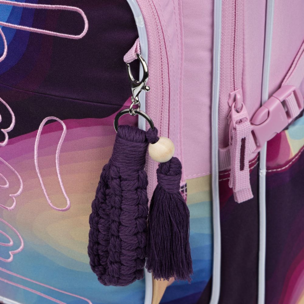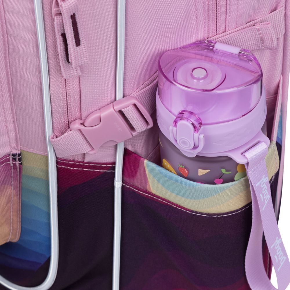 Bočné vrecká z pevného materiálu sú ideálne na fľašu na pitie alebo dáždnik. Vďaka dômyselnému rozdeleniu batoh podporuje poriadok a ľahkú dostupnosť všetkých školských potrieb.
