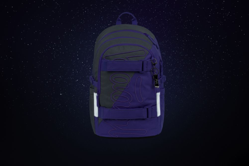 Batoh zo série Skate vo fialovo-sivom dizajne je vhodný od 3. ročníka základnej školy a vydrží až do 2. stupňa. Pre nadšencov skateboardingu je školský batoh vybavený popruhmi na pripevnenie skateboardu a štýlovým príveskom. Jeho súčasťou je aj vnútorný organizér na tablet alebo notebook.