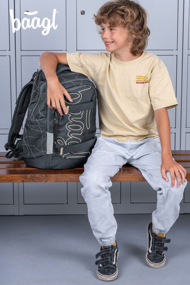 Sivý batoh z radu Skate je vhodný od 3. triedy základnej školy až po 2. stupeň. Školský batoh s logom má pripravené popruhy na pripevnenie skejtu pre milovníkov skateboardingu a nechýba ani štýlový prívesok. Ergonomický batoh obsahuje aj vnútorný organizér na tablet alebo notebook.