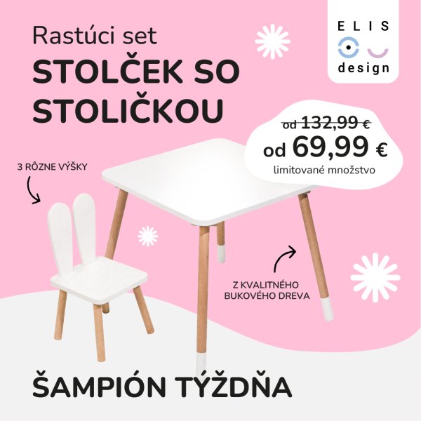 Detský rastúci set - stolček na kreslenie a 2 stoličky s uškami