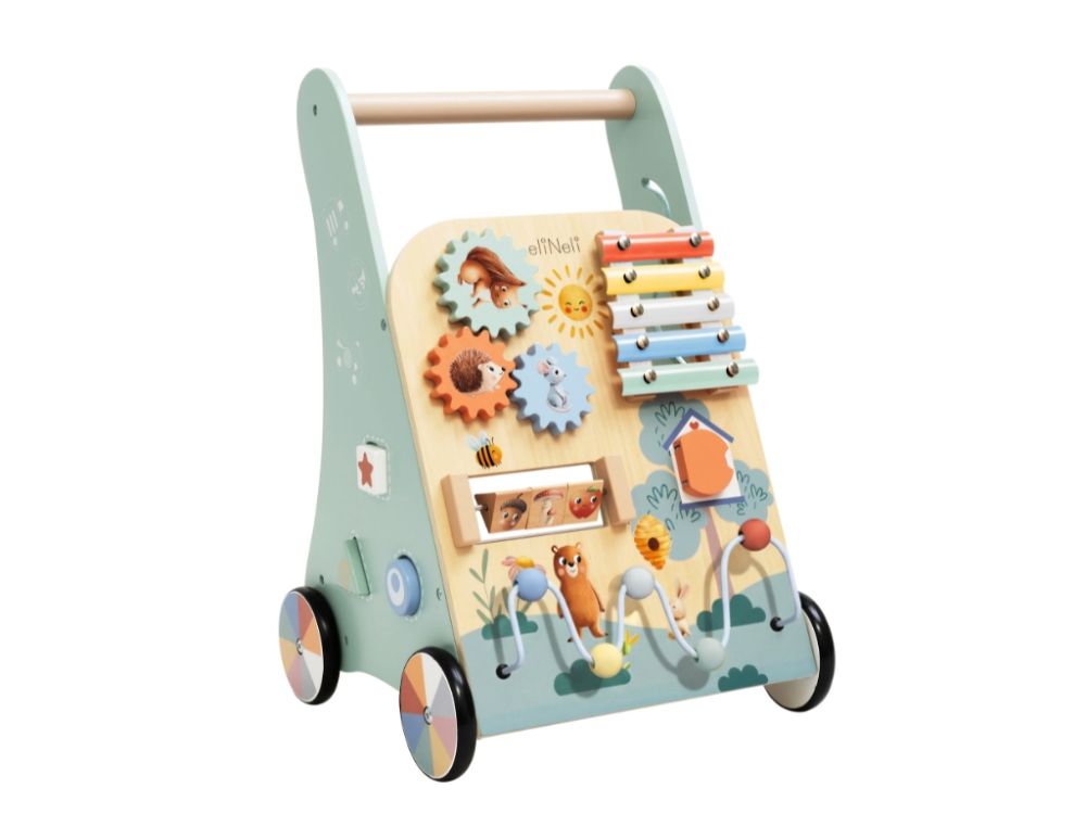 Detské chodítko kombinuje podporu samostatnej chôdze s bohatými hracími prvkami, ktoré pomáhajú deťom hrať sa, učiť sa a objavovať svet okolo seba. Obľúbené otočné kolieska, posuvné korálky, otváracie dvierka a vkladačky stimulujú koordináciu oko-ruka a rozvíjajú jemnú a hrubú motoriku.