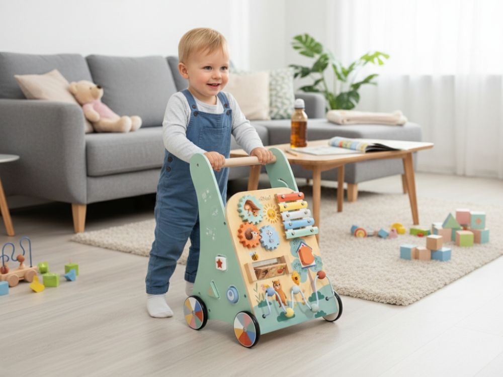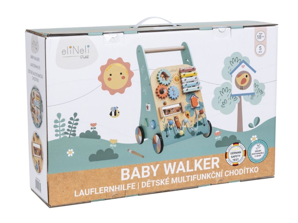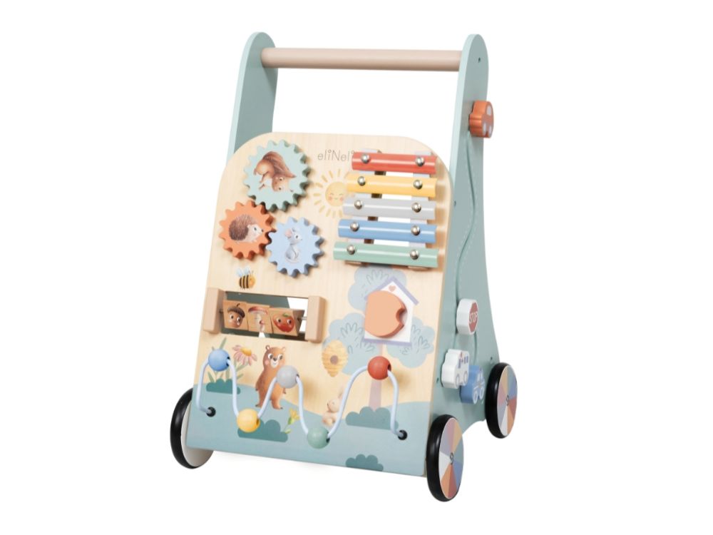 Detské chodítko kombinuje podporu samostatnej chôdze s bohatými hracími prvkami, ktoré pomáhajú deťom hrať sa, učiť sa a objavovať svet okolo seba. Obľúbené otočné kolieska, posuvné korálky, otváracie dvierka a vkladačky stimulujú koordináciu oko-ruka a rozvíjajú jemnú a hrubú motoriku.