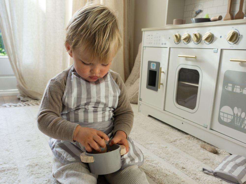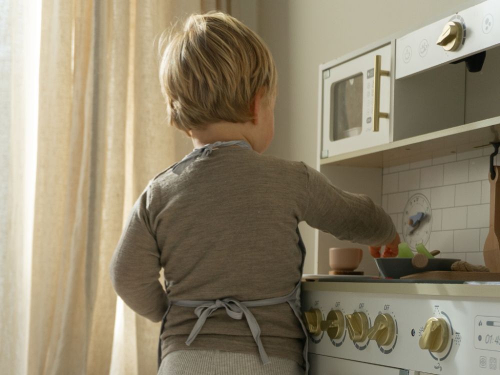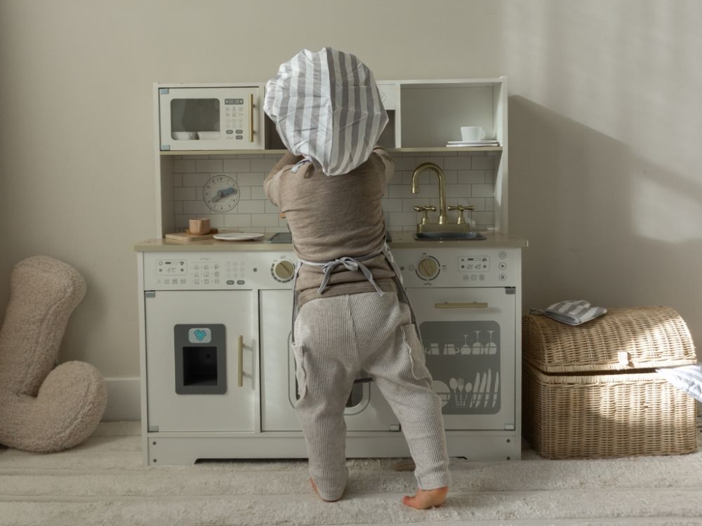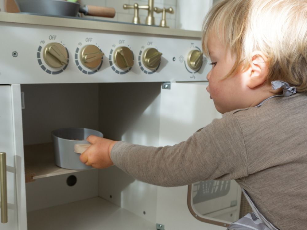 Detská kuchynka, v neutrálnych farbách a v obľúbenom škandinávskom štýle, je edukatívnou hračkou, ktorá umožní deťom vyskúšať si dospelácke činnosti - varenie, pečenie, umývanie riadu, prípravu pokrmov, bezpečným detským spôsobom. V tejto štýlovej kuchynke sa deti rýchlo vžijú do role majstra kuchára, budú piecť a variť zo všetkých surovín, čo vo vašej domácnosti nájdu. Súčasťou kuchynky sú moderné spotrebiče - rúra na pečenie a mikrovlnná rúra, sporák, umývačka riadu, kávovar, ľadovač, nechýba ani drez na riad, polička a drevené príslušenstvo. Detská kuchynka je svojim dizajnom vhodná do každej miestnosti, kde sa deti práve chcú hrať. Pri hre v detskej kuchynke deti zdokonaľujú motorické schopnosti, koordináciu očí a rúk, manuálnu zručnosť, rozvíjajú svoju fantáziu a kreativitu, hrajú role, budujú sociálne väzby.