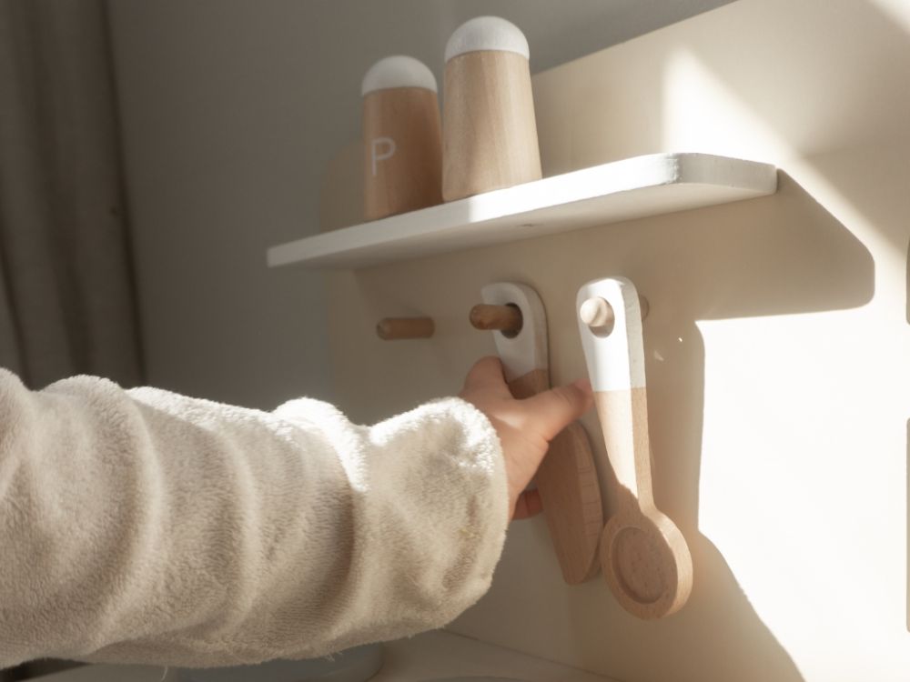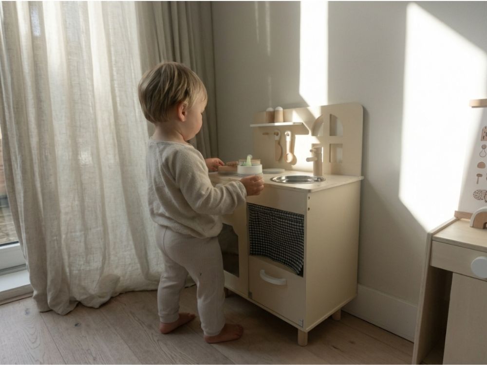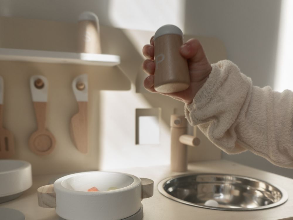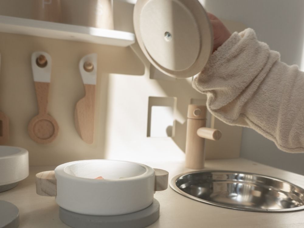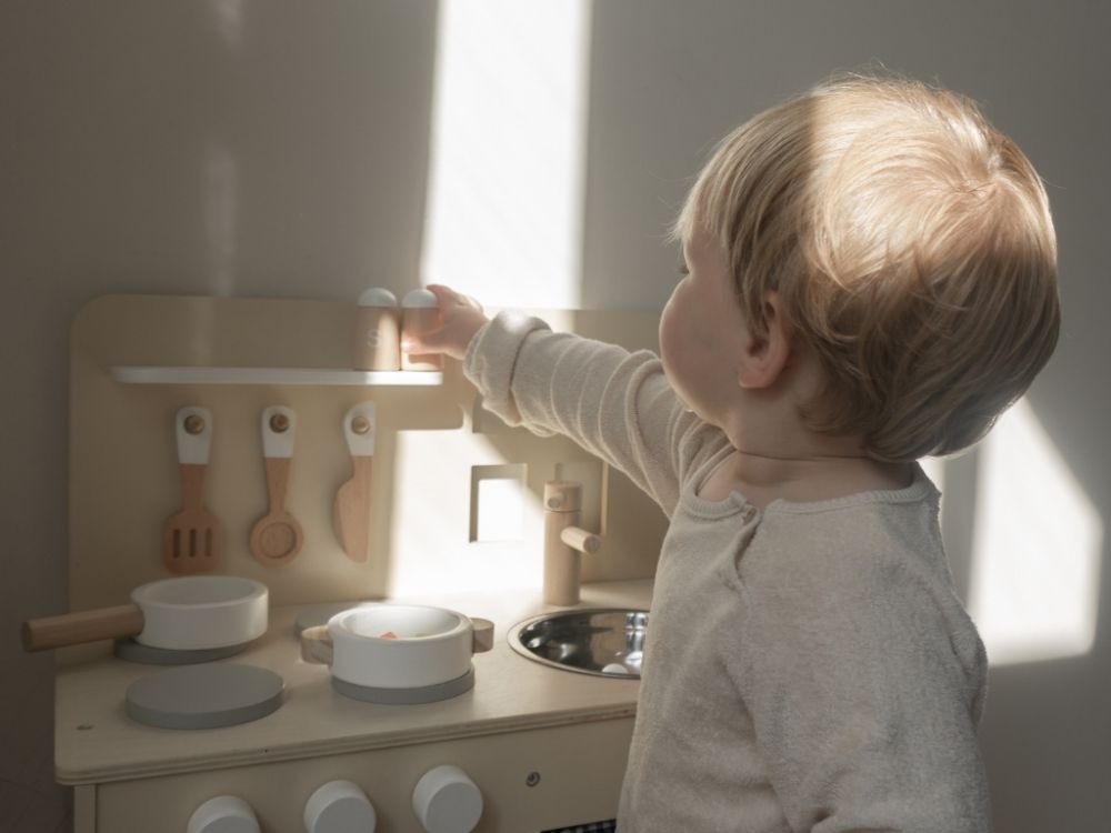 Detská kuchynka v jemných pastelových farbách, so spotrebičmi, príslušenstvom a okienkom nadchne každého malého kuchárika a gazdinku. V detskej kuchynke si deti môžu vyskúšať varenie, pečenie, umývanie riadu, chystanie pokrmov bezpečným detským spôsobom. Pri hre v detskej drevenej kuchynke deti zdokonalia svoje schopnosti a ešte si užijú množstvo zábavy.