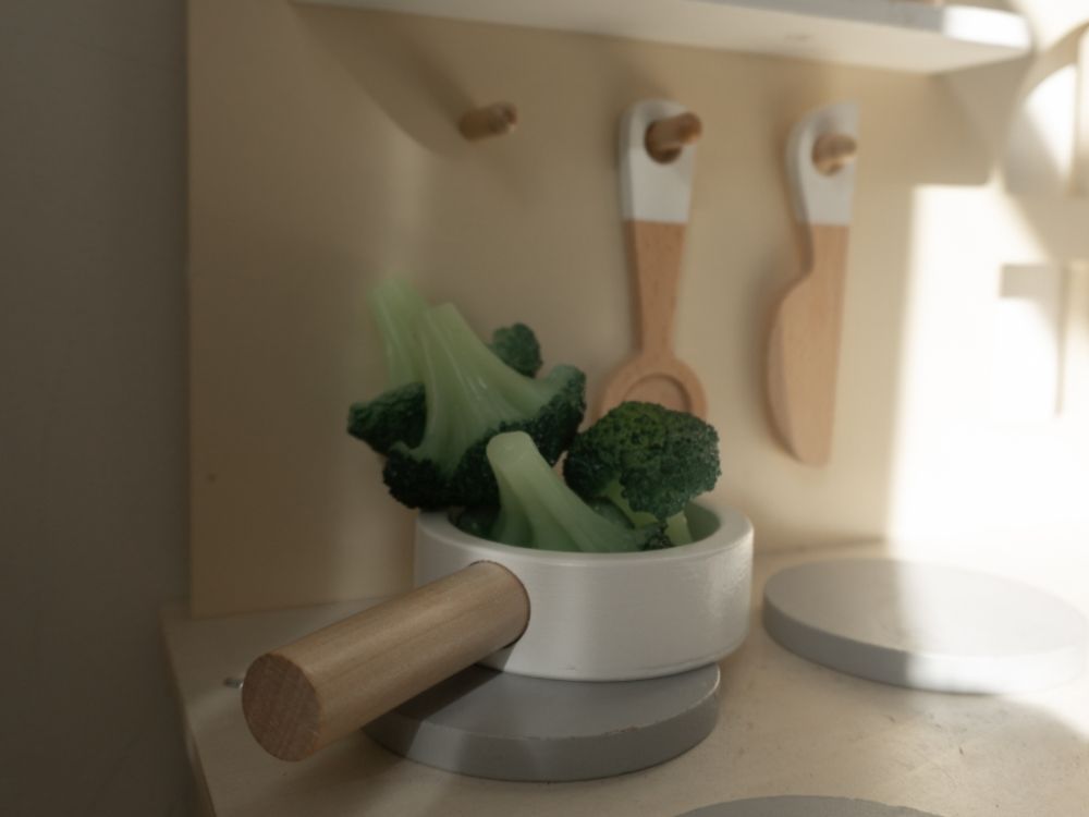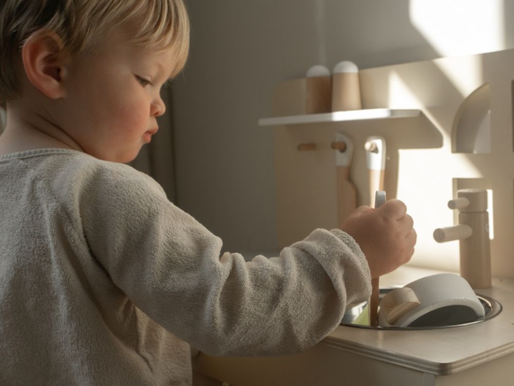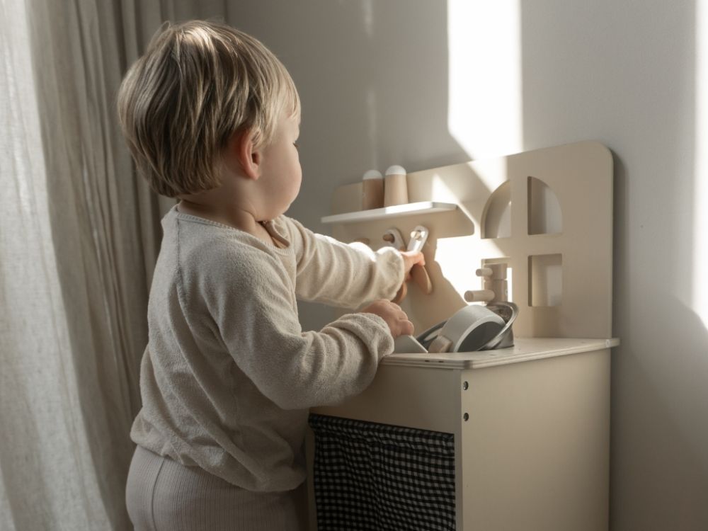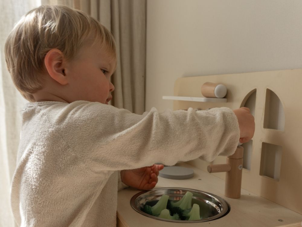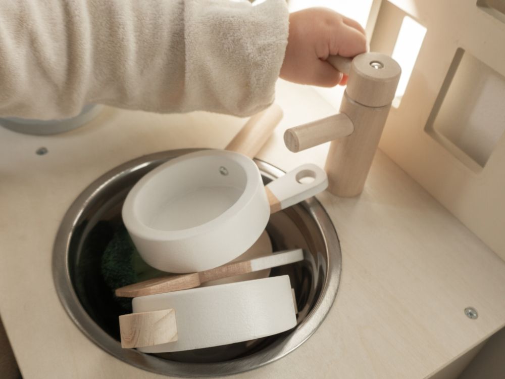 Detská kuchynka v jemných pastelových farbách, so spotrebičmi, príslušenstvom a okienkom nadchne každého malého kuchárika a gazdinku. V detskej kuchynke si deti môžu vyskúšať varenie, pečenie, umývanie riadu, chystanie pokrmov bezpečným detským spôsobom. Pri hre v detskej drevenej kuchynke deti zdokonalia svoje schopnosti a ešte si užijú množstvo zábavy.