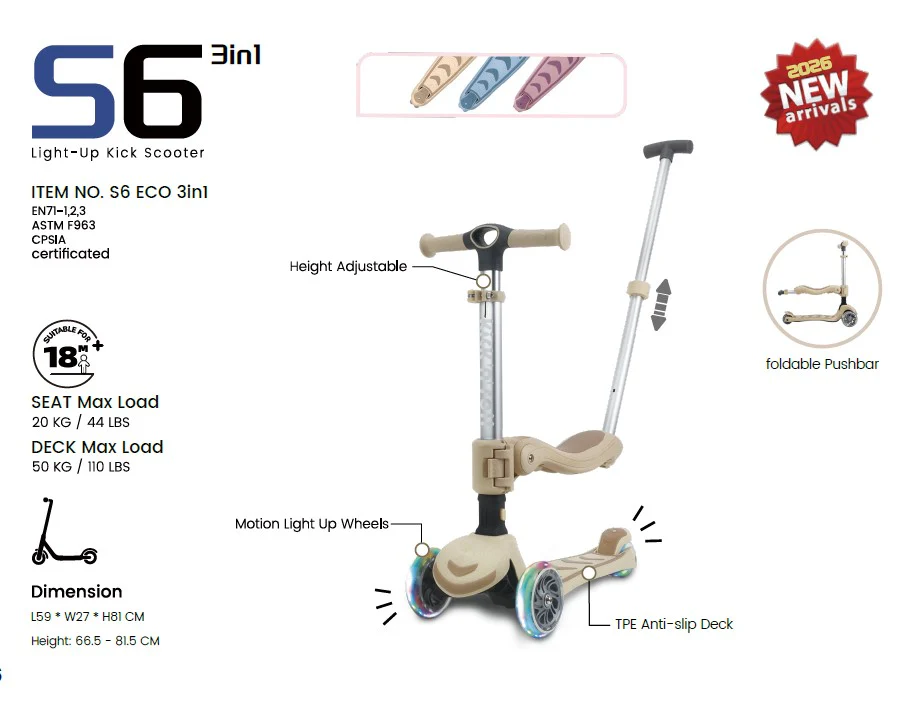 Kolobežka je vyrobená z vysokokvalitných recyklovaných materiálov, ktoré sú použité v nášľapnej doske a plastových komponentoch. Vďaka tomu je pre rodičov ekologickou voľbou.