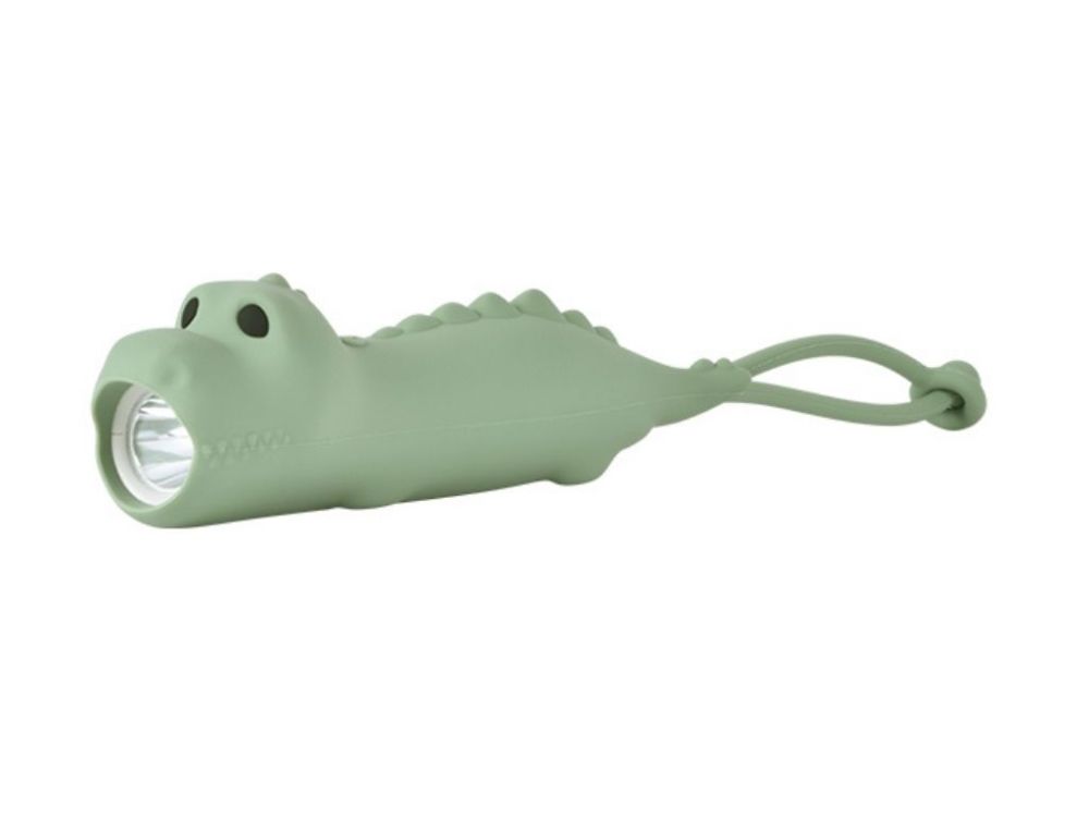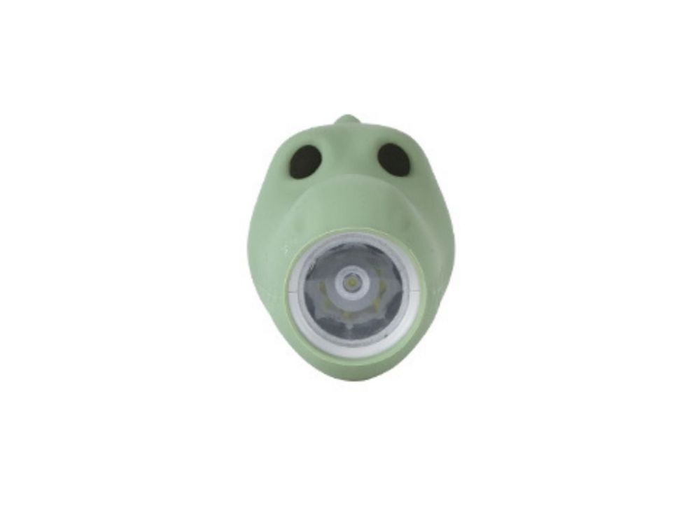Silikónová LED baterka pre deti v tvare zeleného dinosaura je skvelým spoločníkom doma aj na cestách. Ponúka dva režimy svietenia, mäkký bezpečný dizajn a dlhú výdrž batérie - ideálna ako nočné svetlo a vrecková baterka.