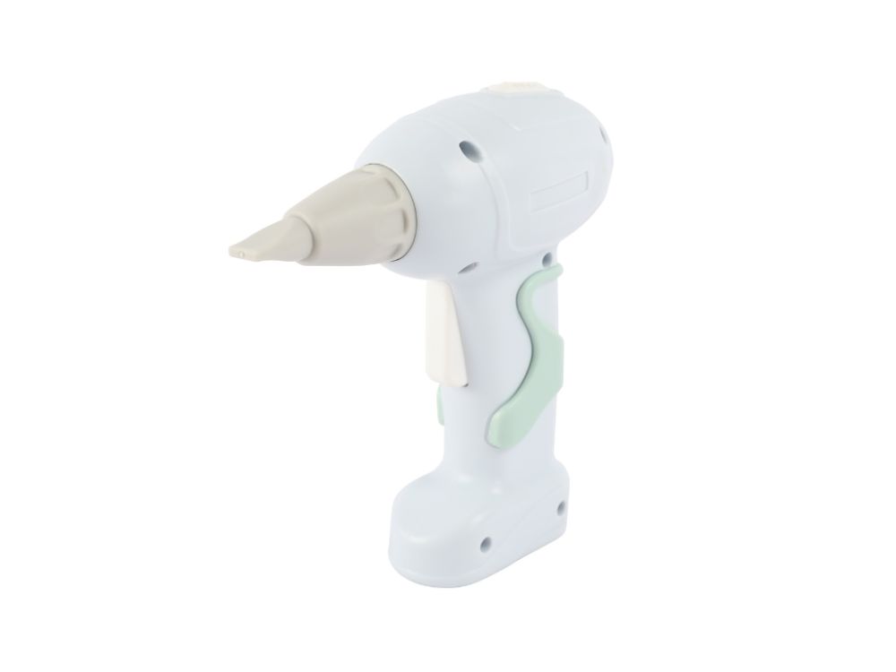 Vŕtačka je vyrobená z materiálov bezpečných pre deti a má atraktívny dizajn, ktorý zaujme na prvý pohľad.