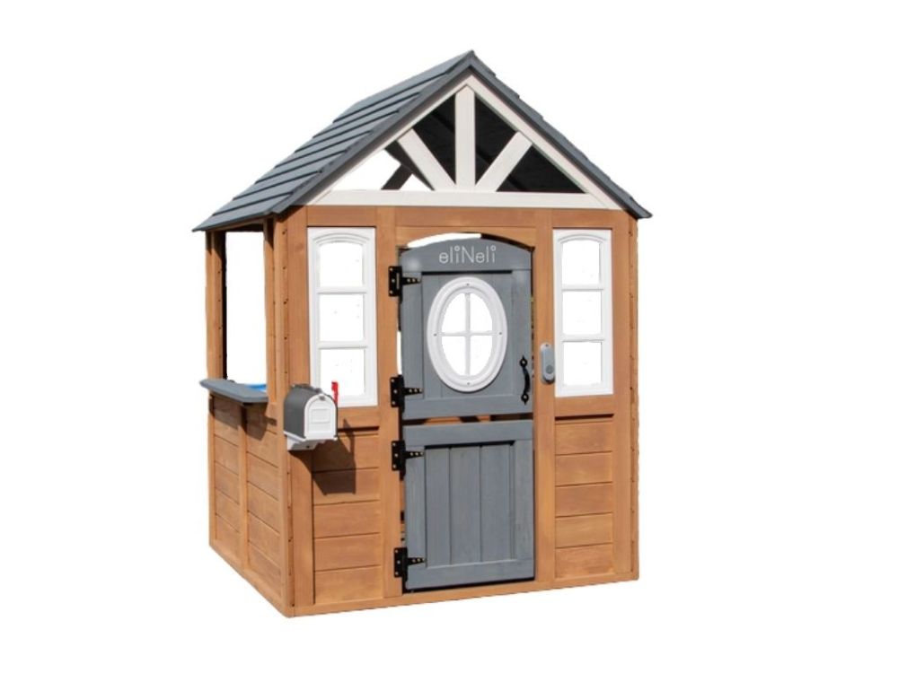 Domček na hranie je vyrobený z odolného jedľového dreva, ktoré zaručuje odolnosť voči poveternostným vplyvom. Je ideálny na umiestnenie do záhrady alebo iného vonkajšieho priestoru.