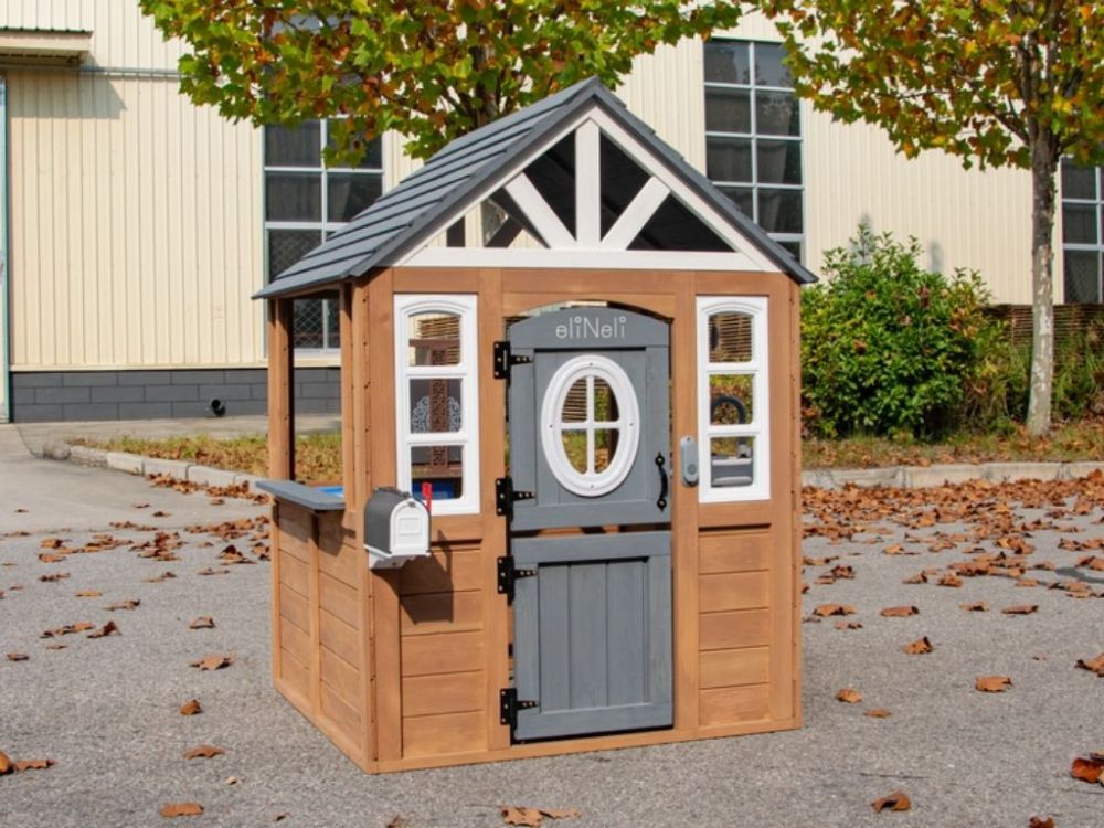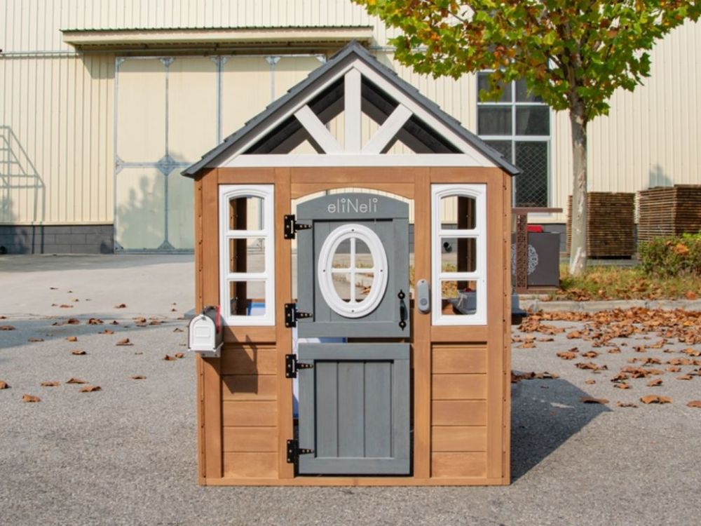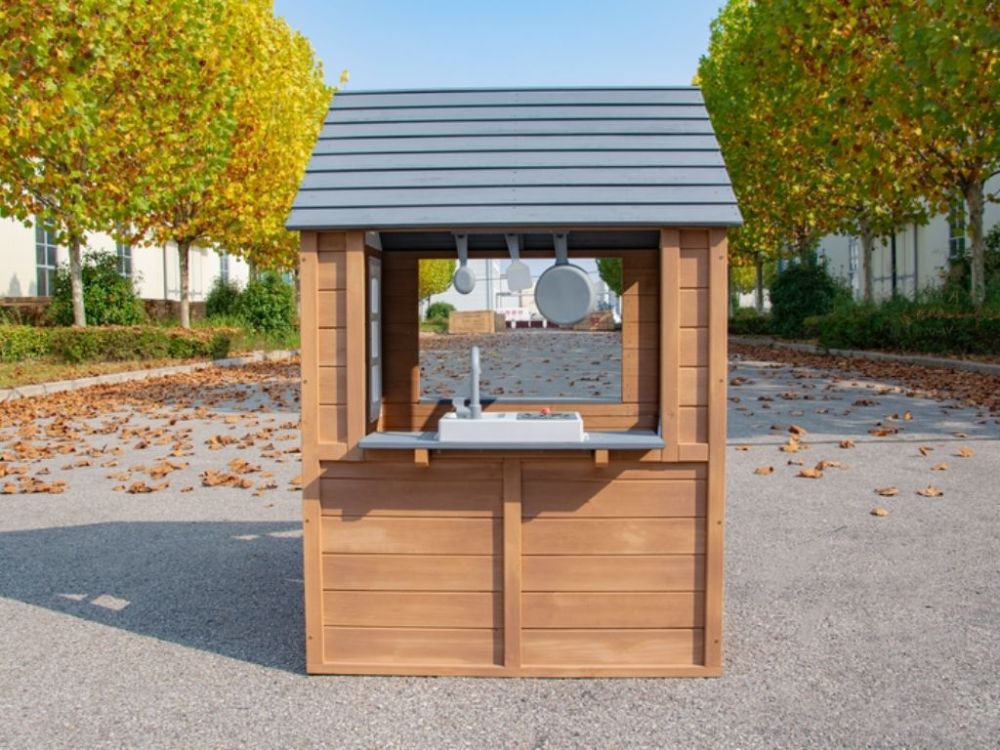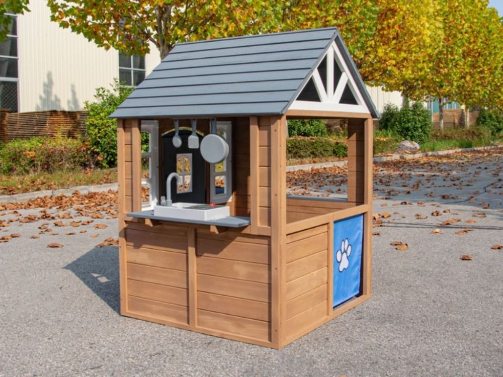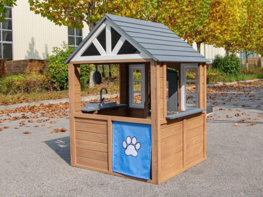 Domček na hranie je vyrobený z odolného jedľového dreva, ktoré zaručuje odolnosť voči poveternostným vplyvom. Je ideálny na umiestnenie do záhrady alebo iného vonkajšieho priestoru.