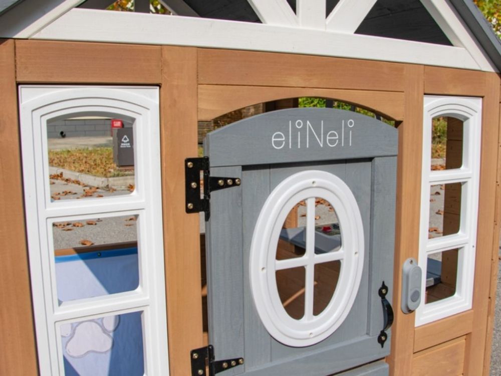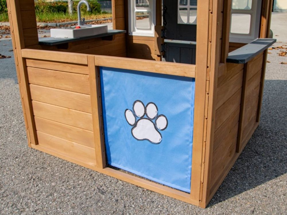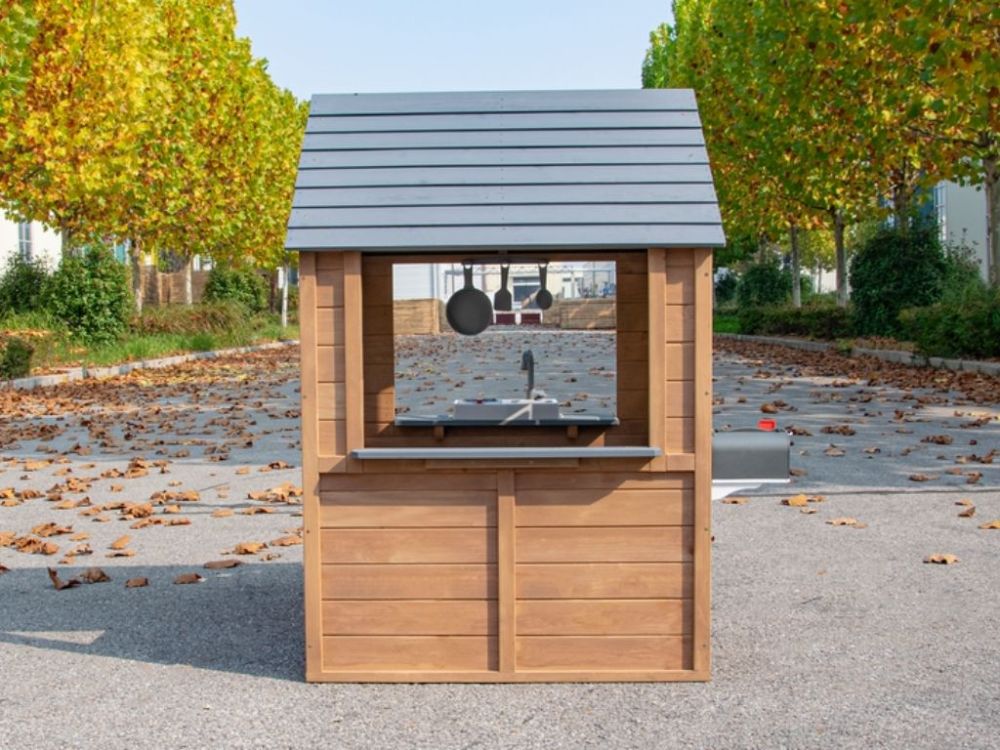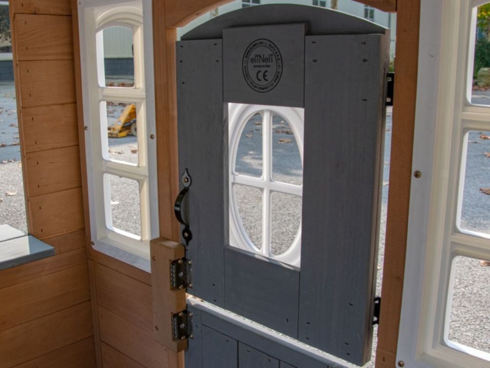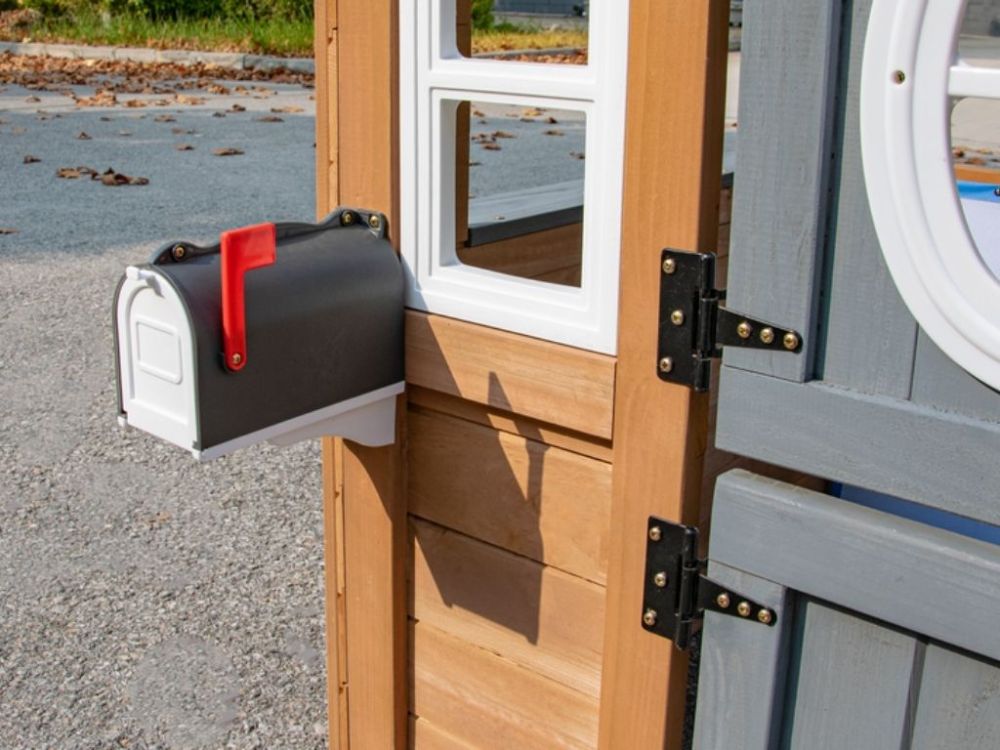 Realistická poštová schránka a výdajné okienko pridávajú ďalšie interaktívne prvky, zatiaľ čo holandské dvere a okná na viacerých stranách vytvárajú otvorený priestor na hranie, ktorý podporuje spoločnú hru, kreativitu a zábavu vonku.