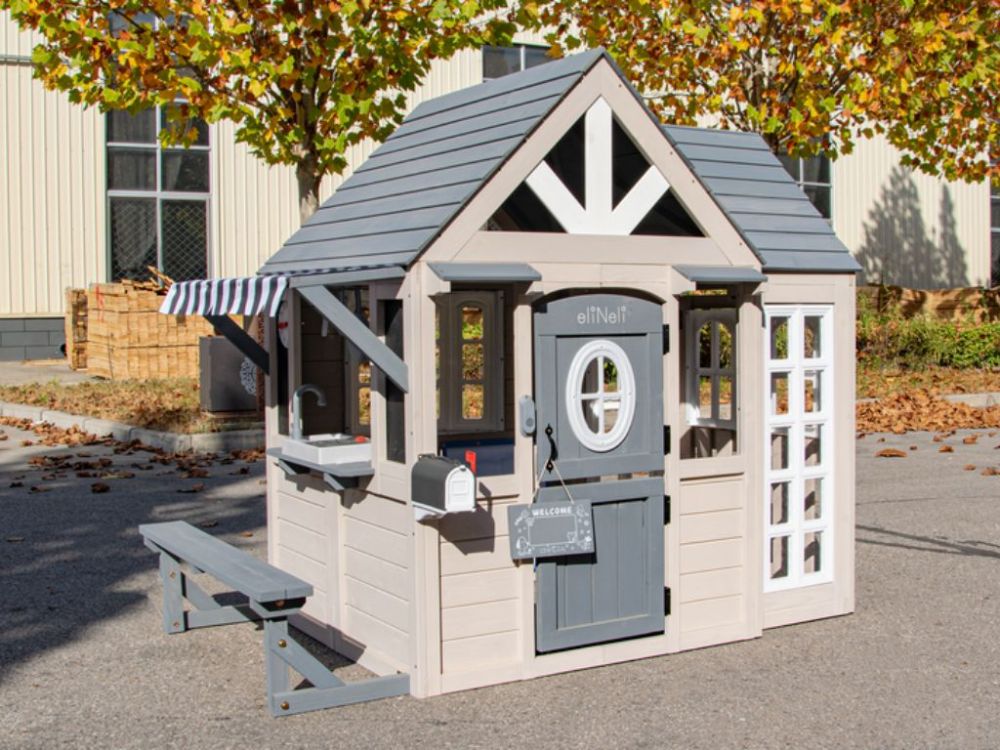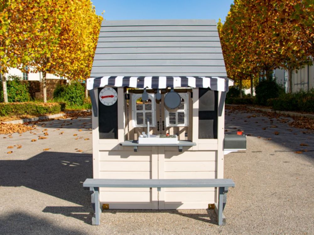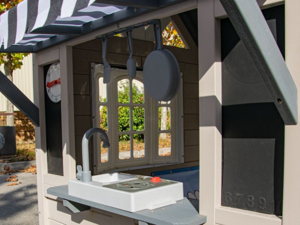 Súčasťou domčeka na hranie je zabudovaná herná kuchynka, ktorá sa nachádza pod pruhovanou markízou. Táto kuchynka umožňuje deťom hrať sa na kuchára a rozvíjať svoje kulinárske zručnosti.