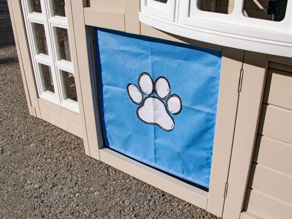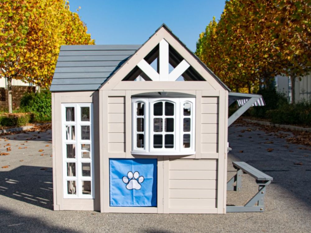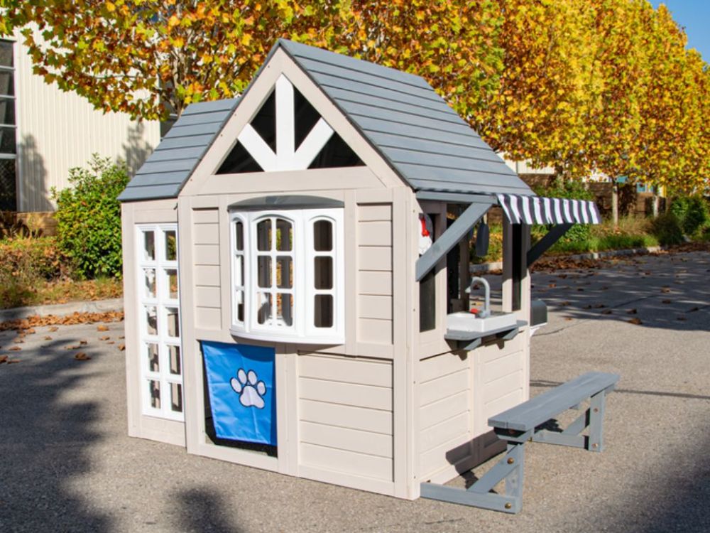Lavička je ideálnym miestom na odpočinok po hre alebo na posedenie s kamarátmi. Dá sa tiež sklopiť pre "zákazníkov" predajného okienka. Táto funkcia zvyšuje celkové pohodlie a funkčnosť domčeka na hranie. Praktickým detailom je vchod pre domáce zvieratá.