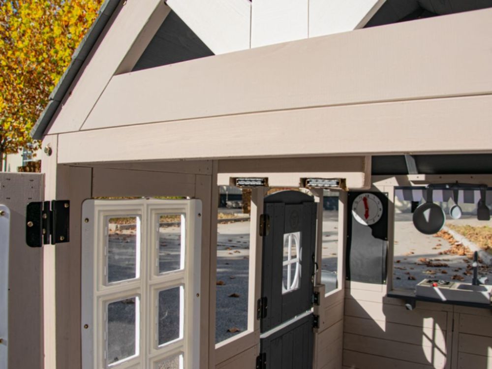 Detský drevený záhradný domček Superior vytvára ideálny priestor na hranie rolí a zábavu na čerstvom vzduchu. Zabudovaná detská kuchynka, holandské dvere a veľké okná podnecujú predstavivosť a podporujú spoločnú hru.