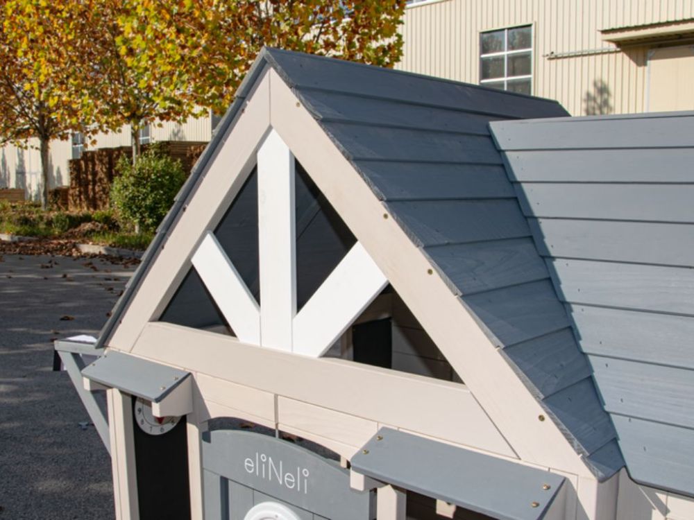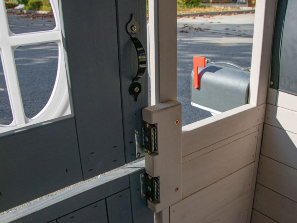 Domček obsahuje holandské dvere s poštovou schránkou a menovkou, ktoré obohacujú interaktívnu hru a umožňujú deťom posielať a prijímať listy.