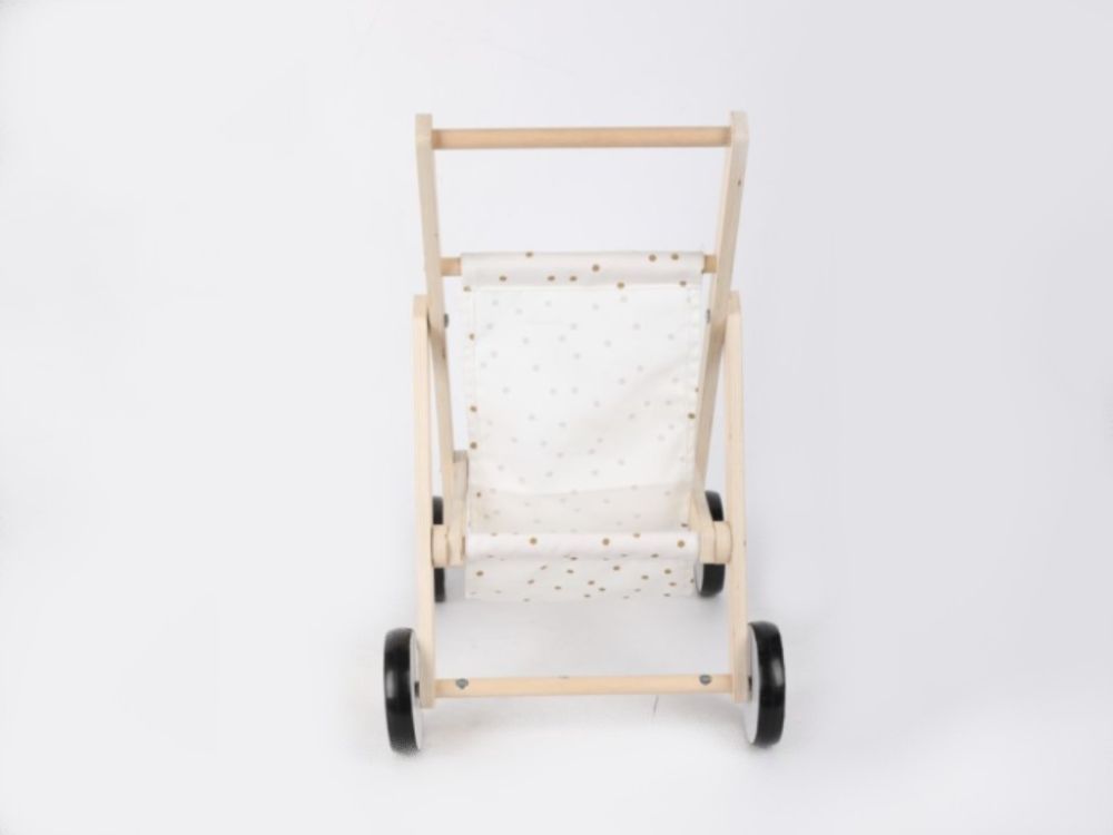 Detský kočík pre bábiky v športovej verzii zaujme svojim jednoduchým dizajnom s drobnými bodkami. Tento štýlový vzhľad je ideálny pre malé slečny, ktoré chcú mať niečo výnimočné.
