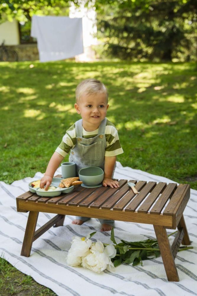 Zvýšené strany riadu MoMi AMI uľahčujú deťom naberanie a trojdielny tanier je ideálny na rozdelenie jedla na jednotlivé porcie. Jedlo môžete bezpečne ohriať v mikrovlnnej rúre a silikónové prvky je možné umyť v umývačke riadu.