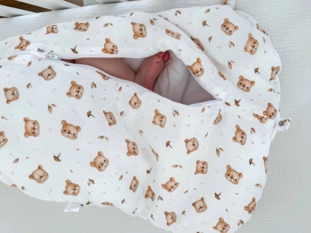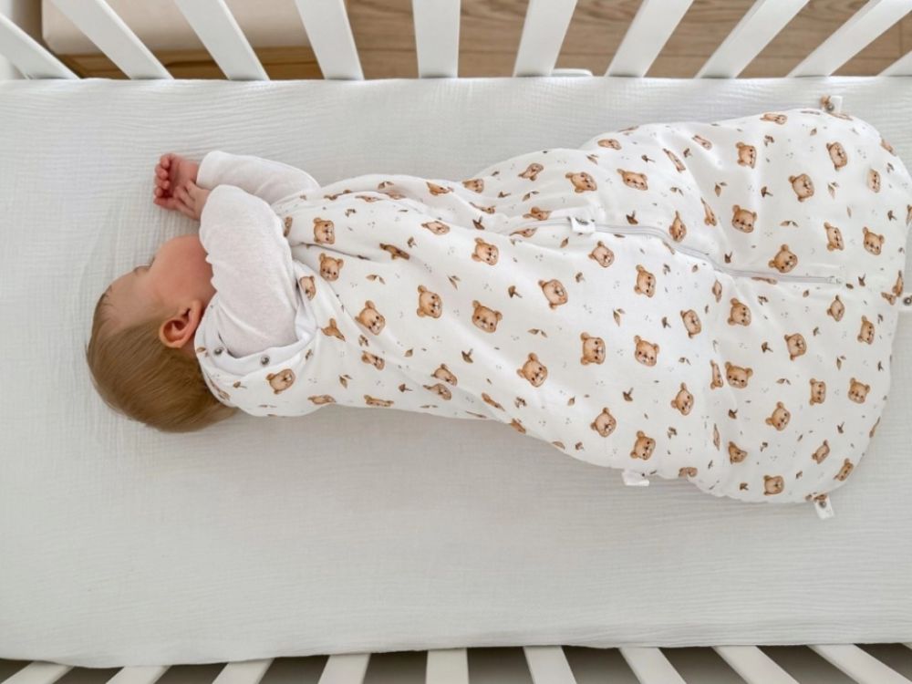 Mäkučký prémiový spací vak z jemnej saténovej bavlny s motívom roztomilých medvedíkov poskytne vášmu bábätku teplo, pohodlie a pocit istoty pre nerušený spánok. Studené rúčky aj nočné prebúdzanie zostanú minulosťou, čaká vás oboch príjemná a pokojná noc.