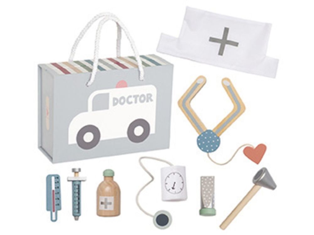 Doktorským set, uložený v praktickom striebornom kufríku (boxe), umožní deťom vžiť sa do úlohy naozajstného doktora (lekára). Nechajte si zmerať tlak, teplotu, ošetriť bolesť v domácej ordinácii, skúsenou lekárkou alebo lekárom v podobe vášho dieťatka. S doktorským kufríkom, vybaveným 9 vyšetrovacími nástrojmi a doplnkami, si užije množstvo zábavy celá rodina.
