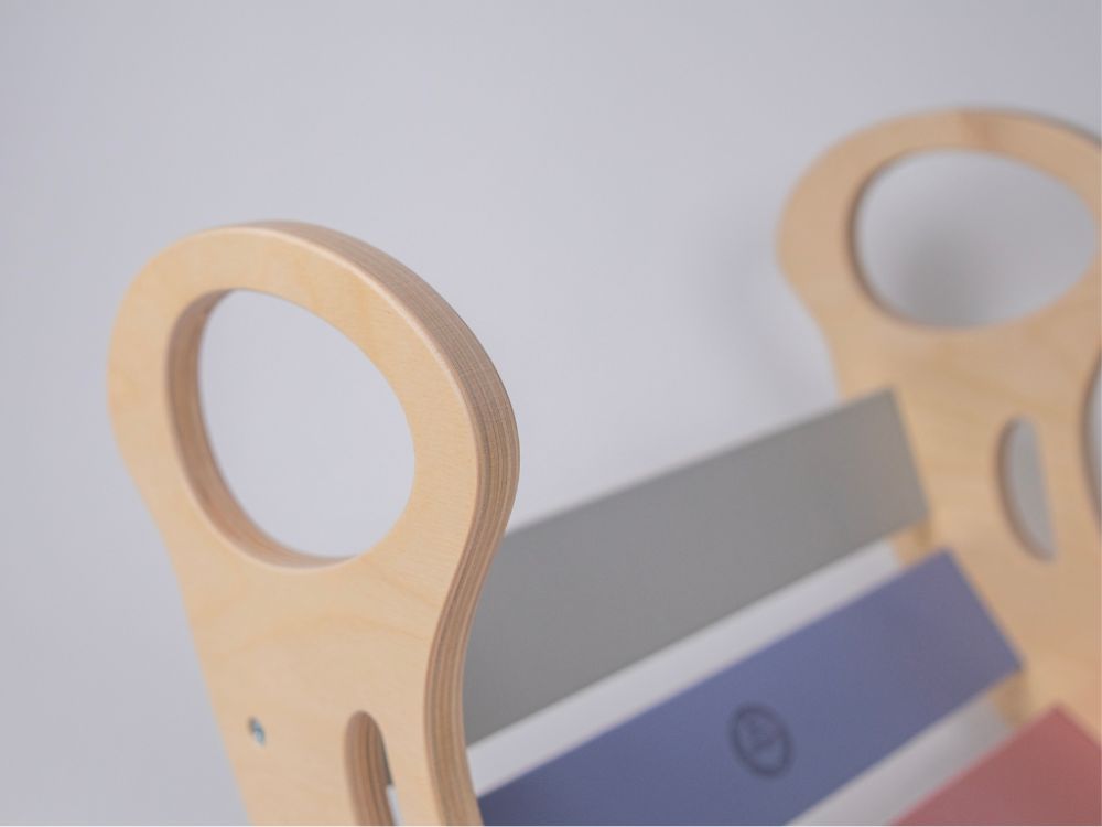 Drevená montessori hojdačka 5v1, vo farebnej kombinácii prírodného dreva a jemných pastelových farieb, je multifunkčnou hračkou do detskej izby, ktorú deti využijú nielen pri pohybových hrách. Na pastelovej hojdačke sa môžu deti hojdať alebo len príjemne relaxovať pri miernom pohojdávaní. Pre maximálne pohodlie doplňte hojdačku mäkkým poťahom. Hojdačka skvele poslúži ako preliezačka, šmýkačka do interiéru. Deti ju môžu preliezať, podliezať, skryť sa pod ňu, šmýkať sa po nej, posadiť sa na ňu alebo si ľahnúť. Pri detských hrách môže byť mostom, tunelom, domčekom aj predajným pultom. S drevenou hojdačkou si deti užijú množstvo zábavy, rozhýbu celé telo, posilnia svaly, zdokonalia svoje motorické schopnosti.