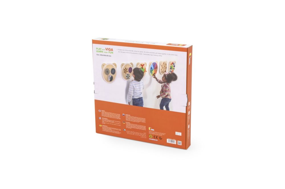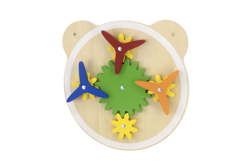 Motorická hračka v tvare medvedej hlavičky je navrhnutá tak, aby precvičovala schopnosť detí rozpoznávať farby, digitálne kognitívne schopnosti, koordináciu rúk a očí a logické myslenie. Deti otáčaním jedného z veterných mlynov rozhýbu ostatné ozubené kolieska.