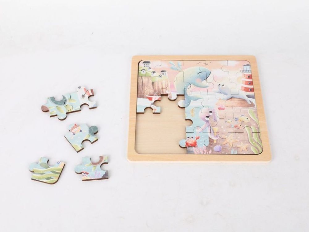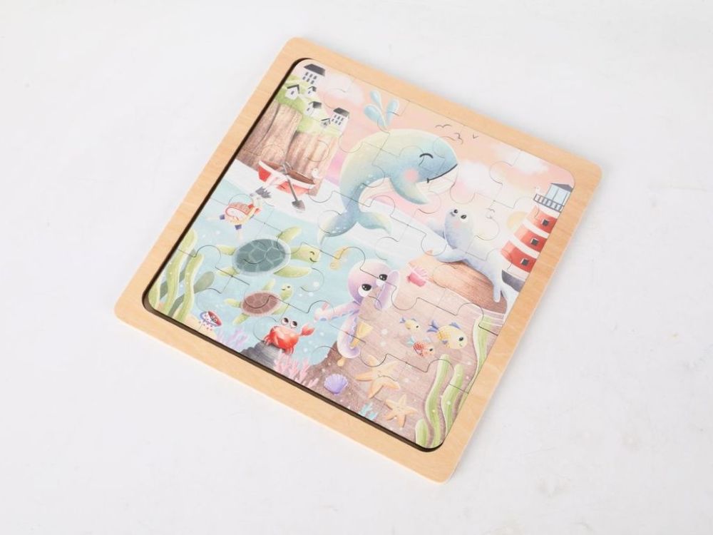 Drevené puzzle s motívom morského sveta nadchne všetkých malých objaviteľov podmorského života. Kvalitné drevené prevedenie zaručuje bezpečnú a zábavnú hru, ktorá rozvíja jemnú motoriku aj logické myslenie. Ideálna vzdelávacia hračka pre deti od 2 rokov, vhodná ako originálny darček k akejkoľvek príležitosti.