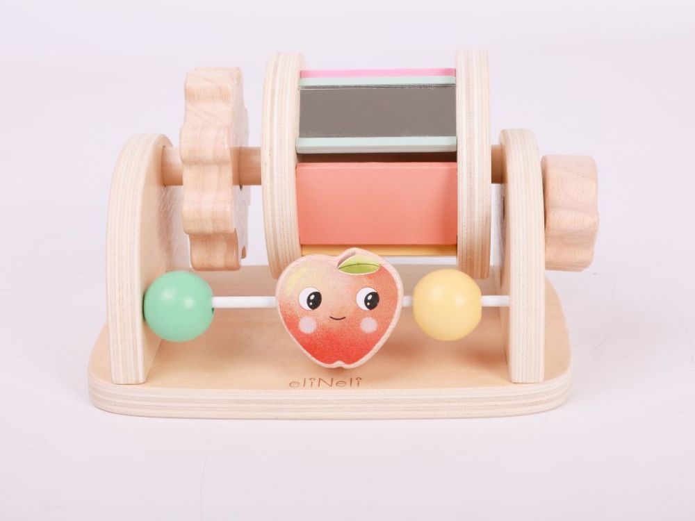 Vďaka zvukom a pohybu guľôčky v bubienku prirodzene motivuje deti na skúmanie a hru v rôznych polohách. Motívy ovocia, tvarov a zvieratiek prinášajú deťom radosť a zároveň ich učia rozpoznávať rôzne objekty a farby.