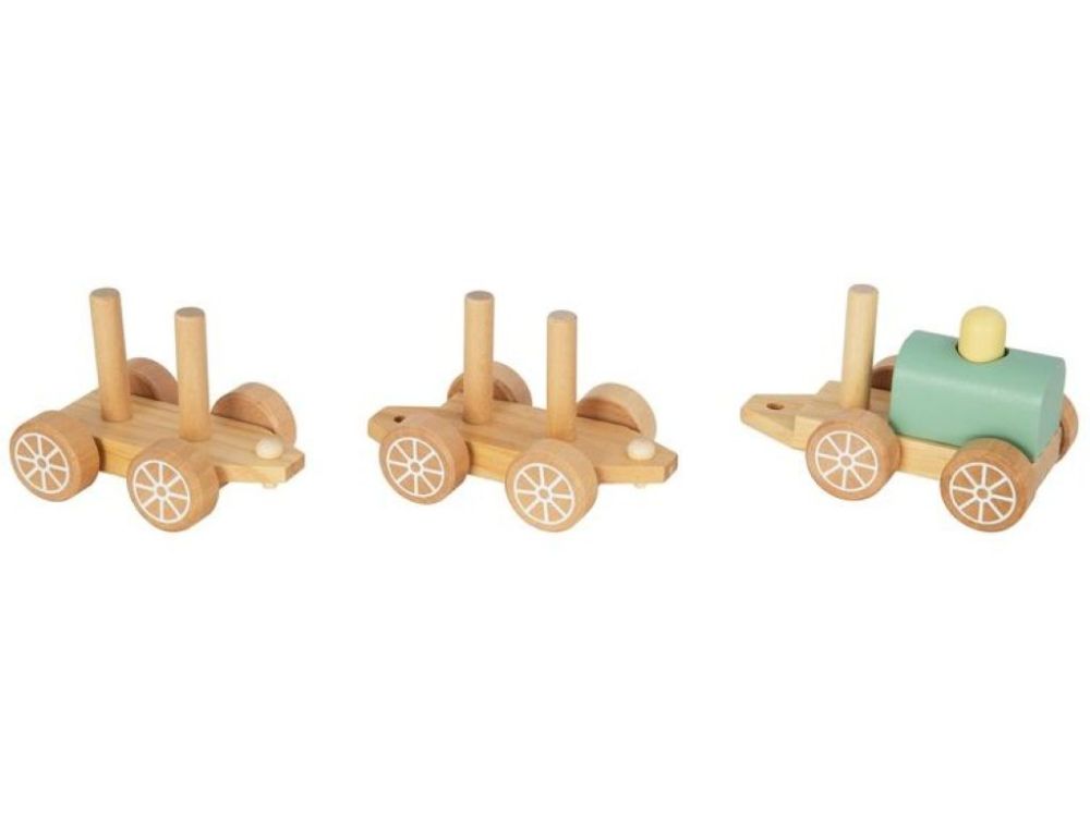 Vláčik je vyrobený z kvalitných prírodných materiálov, čo zaručuje jeho bezpečnosť a dlhú životnosť. Multifunkčný dizajn ponúka rôzne spôsoby hrania a podporuje rozvoj schopností aj kreativitu detí.