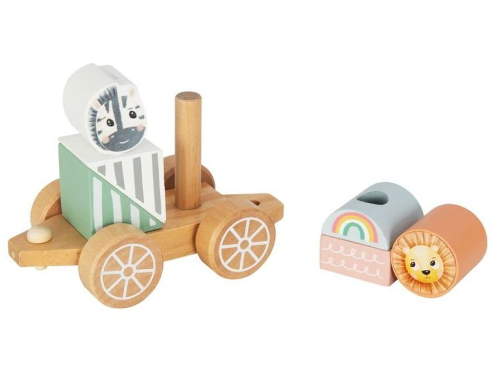 Drevený vláčik s kockami je univerzálna hračka, ktorá ponúka deťom množstvo spôsobov, ako sa hrať. Môžu si užívať jazdu vláčikom, skladať a prevážať kocky aj zvieratká, a pritom rozvíjať jemnú motoriku, koordináciu ruky a oka aj logické myslenie.