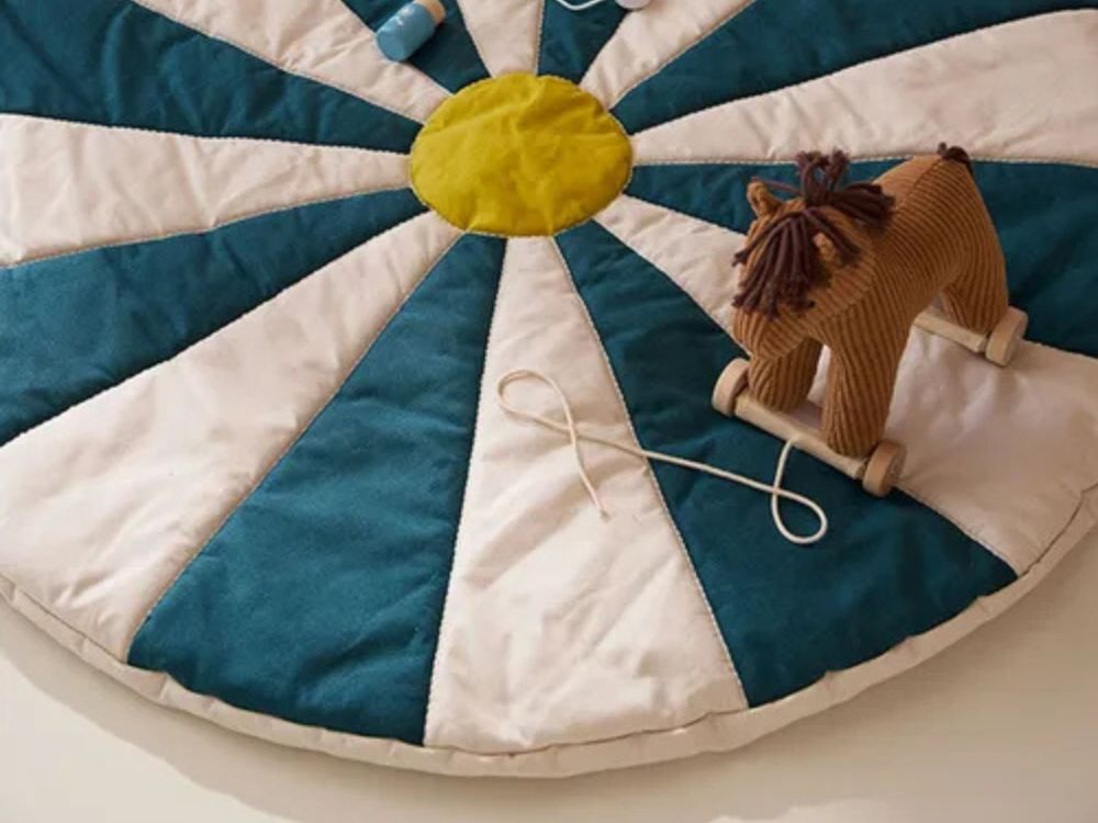 Podložka na hranie Cirkus je navrhnutá tak, aby sa ľahko zmestila do hracieho stanu Cirkus, ale je ideálna aj na samostatné použitie. Môžete ju umiestniť na podlahu v spálni a vytvoriť tak mäkké miesto na hranie alebo ju umiestniť do obývačky ako základňu pre detskú telocvičňu.