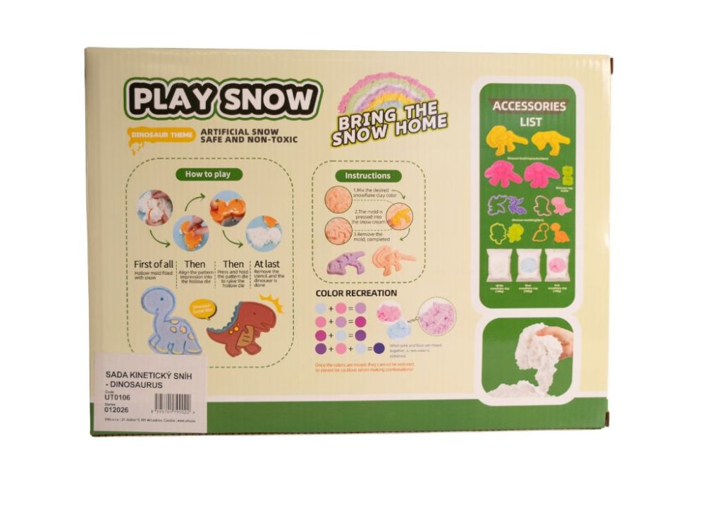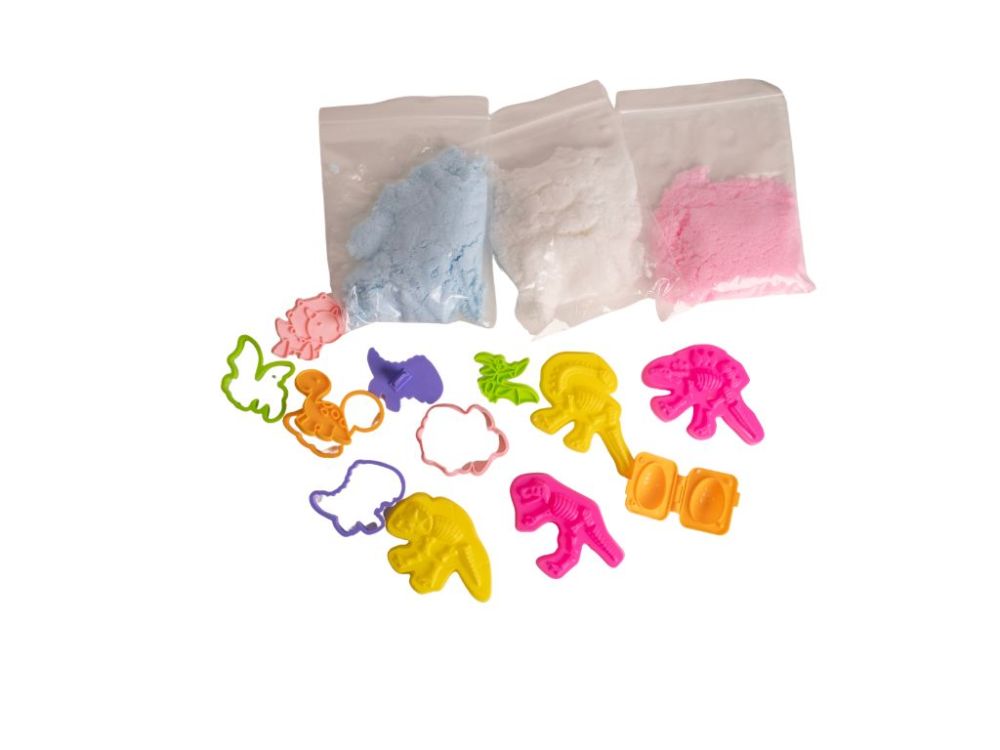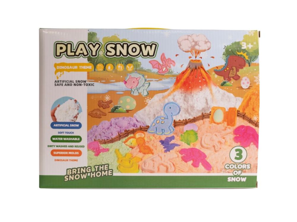 Kinetická snehová súprava ponúka deťom nekonečné tvorenie bez vysychania a neporiadku. Obsahuje 16 dielov vrátane foriem a nástrojov v tvare dinosaurov a 300 g bezpečného kinetického snehu. Tri žiarivé farby podporujú kreativitu a rozvoj jemnej motoriky.