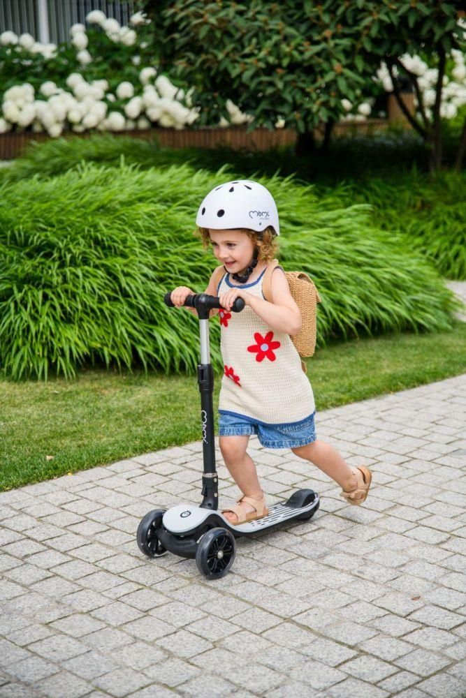 Kolobežka MoMi SAN v elegantnej čiernej farbe je nielen zábavou, ale aj nástrojom na rozvoj hrubej motoriky. Deti sa na nej prirodzeným a zábavným spôsobom učia koordinácii a rovnováhe.