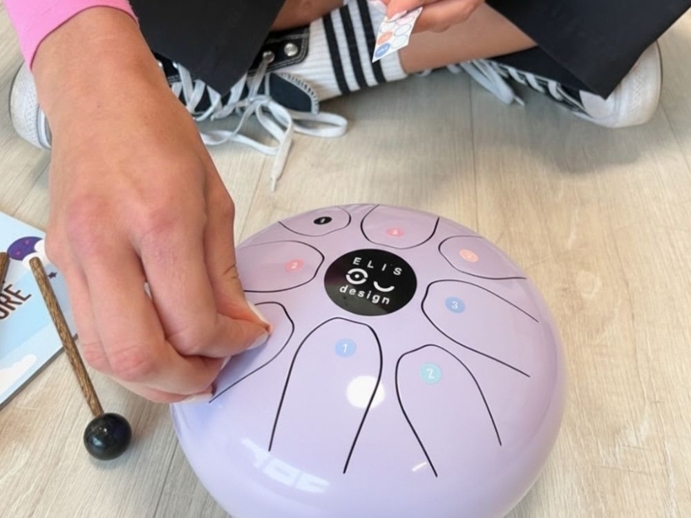 Označenie jednotlivých tónov číslami ocenia najmä staršie deti a dospelí. Aby bolo hranie ešte jednoduchšie a intuitívnejšie aj pre menšie deti, prikladáme k bubienku farebné samolepky, ktoré si môžete podľa potreby nalepiť priamo na jednotlivé tóny. Vďaka farebnému rozlíšeniu sa deti lepšie orientujú, rýchlejšie si tóny zapamätajú a hranie je pre ne prirodzené a radostné.
