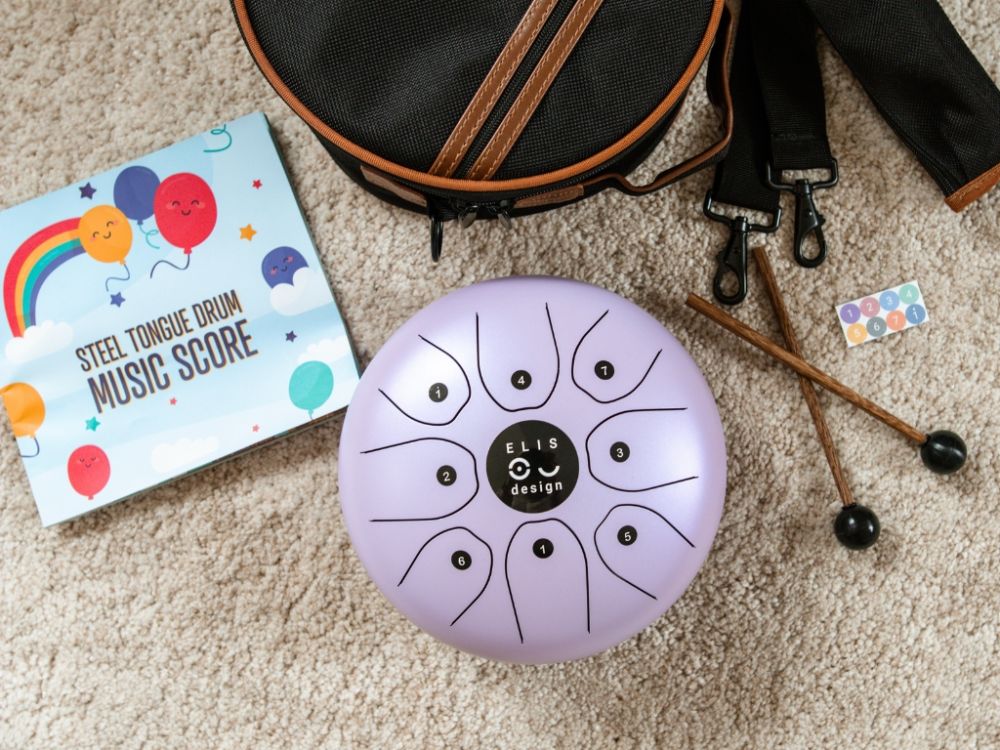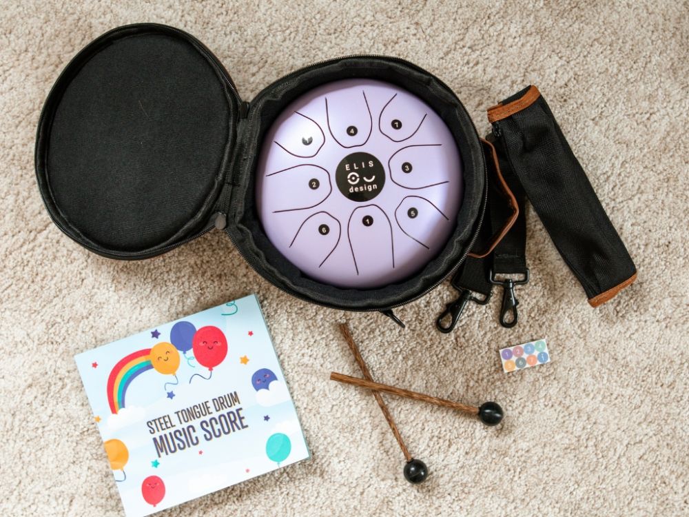 Súčasťou balenia sú noty s anglickými piesňami. Už čoskoro pre vás navyše pripravíme aj noty na české pesničky. Nechýba ani štýlový ochranný obal, ktorý zaisťuje bezpečné uloženie bubienka a uľahčuje jeho pohodlné prenášanie doma aj na cestách.