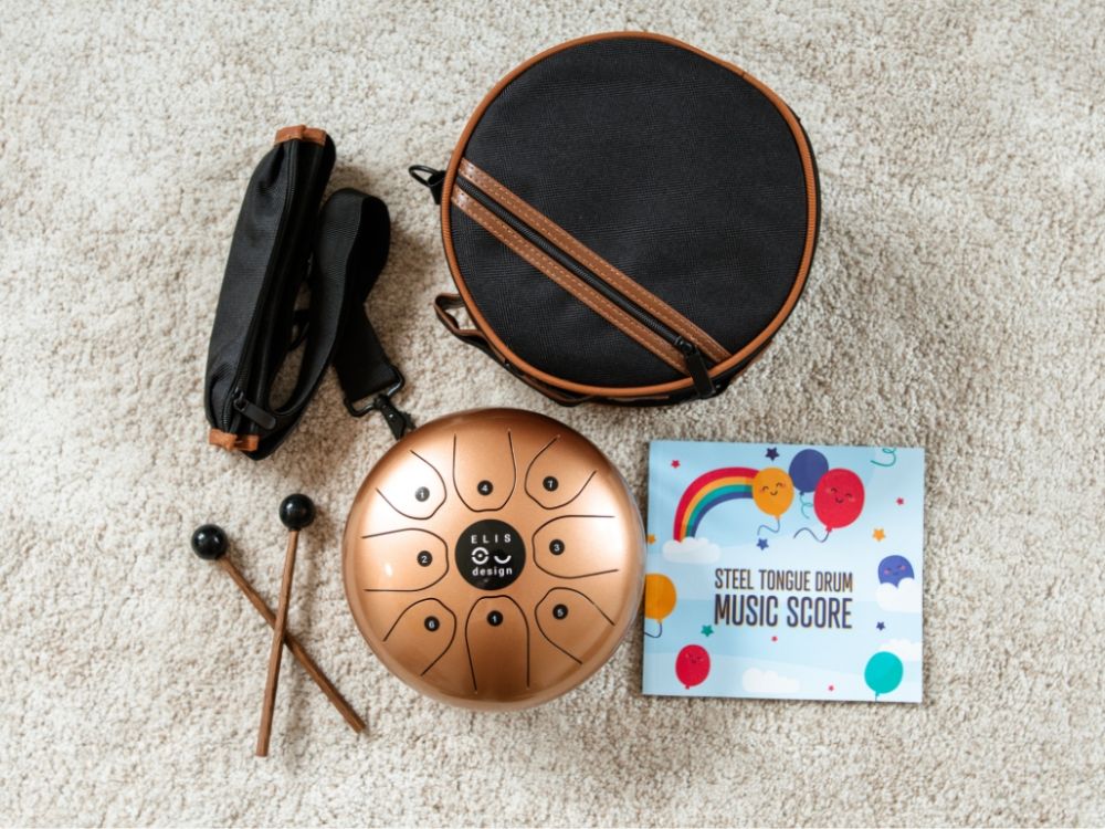 Súčasťou balenia sú noty s anglickými piesňami. Už čoskoro pre vás navyše pripravíme aj noty na české pesničky. Nechýba ani štýlový ochranný obal, ktorý zaisťuje bezpečné uloženie bubienka a uľahčuje jeho pohodlné prenášanie doma aj na cestách.