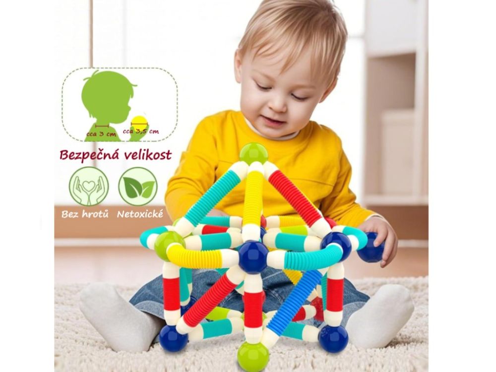 Guľôčky majú bezpečnú veľkosť prispôsobenú proti uduseniu, takže sú ideálne pre deti od 3 rokov, materiály stavebnice sú odolné proti nárazom a neobsahujú žiadne ostré hroty. Stavajte, ohýbajte, spájajte a tvorte - táto stavebnica podporuje kreativitu a ponúka zábavu celej rodine.