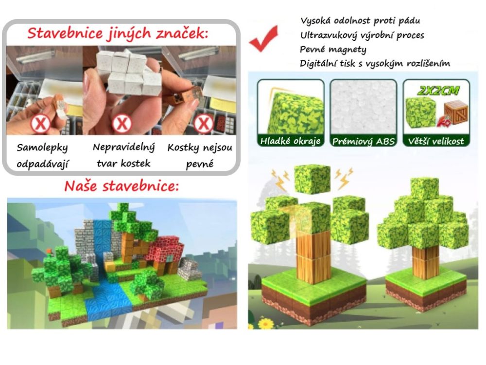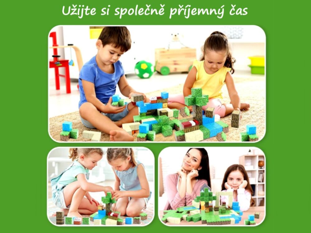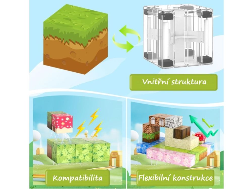 Rozšírte svet fantázie a tvorenie so sadou magnetických kociek v dizajne obľúbenej virtuálnej hry, ktorá prináša množstvo možností, nápadov a zábavy. Vďaka pevným magnetom a premyslenej konštrukcii môžu deti stavať nielen jednoduché tvary, ale aj zložité budovy, dedinky alebo originálne stavby podľa vlastnej fantázie.
