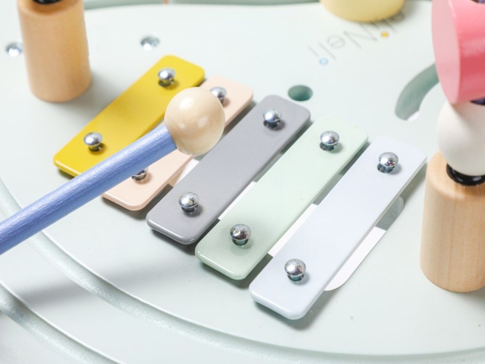 Pri hre s motorickým stolčekom deti zdokonaľujú motorické schopnosti, koordináciu očí a rúk, logické myslenie, rozvíjajú svoju fantáziu. Xylofón spolu s rolničkou, podporujú sluchové vnímanie (stimulujú sluch).