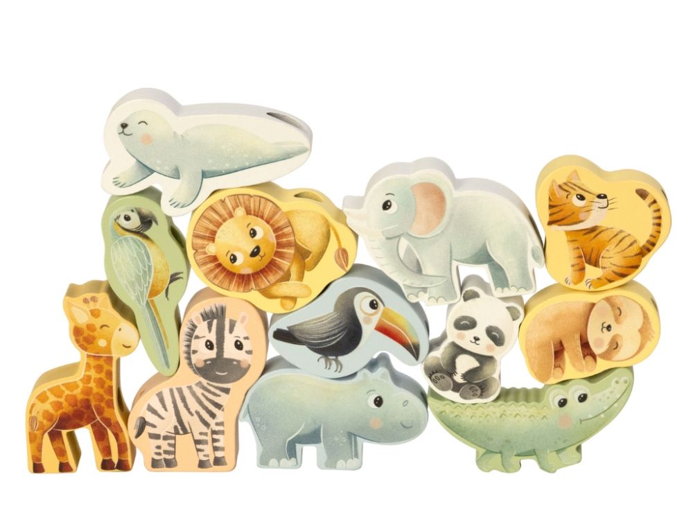 Navliekanie drevených korálok v tvare zvieratiek zo zoo zabaví detské ruky a prirodzene precvičuje koncentráciu a koordináciu oko-ruka. Rôzne tvary motivujú deti premýšľať, vyberať poradie a trénovať presnosť pohybov.