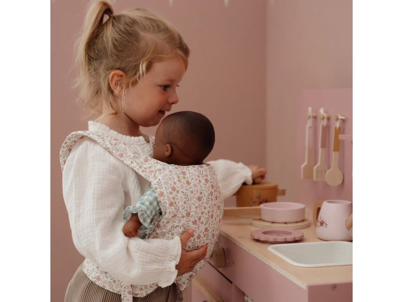 S nosičom pre bábiky Little Dutch si deti môžu zobrať svoju obľúbenú bábiku alebo plyšového kamaráta kamkoľvek so sebou aj v prípade, že nechcú alebo nemôžu použiť kočík. Nežné kvetinové prevedenie detského nosiča očarí každú malú mamičku.