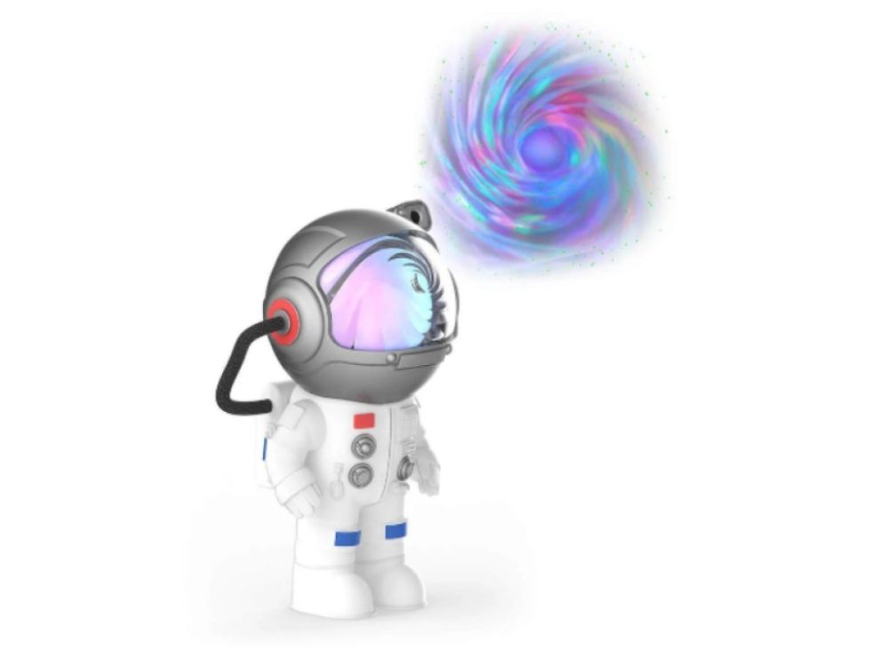 S detským projektorom deti objavia kúzlo nočnej oblohy priamo v pohodlí svojej izby. Roztomilý detský projektor v tvare astronauta premieta pohyblivý vesmír plný hviezd a galaxií v siedmich farbách a vytvára magickú atmosféru - ideálnu na upokojenie alebo večerné zaspávanie.