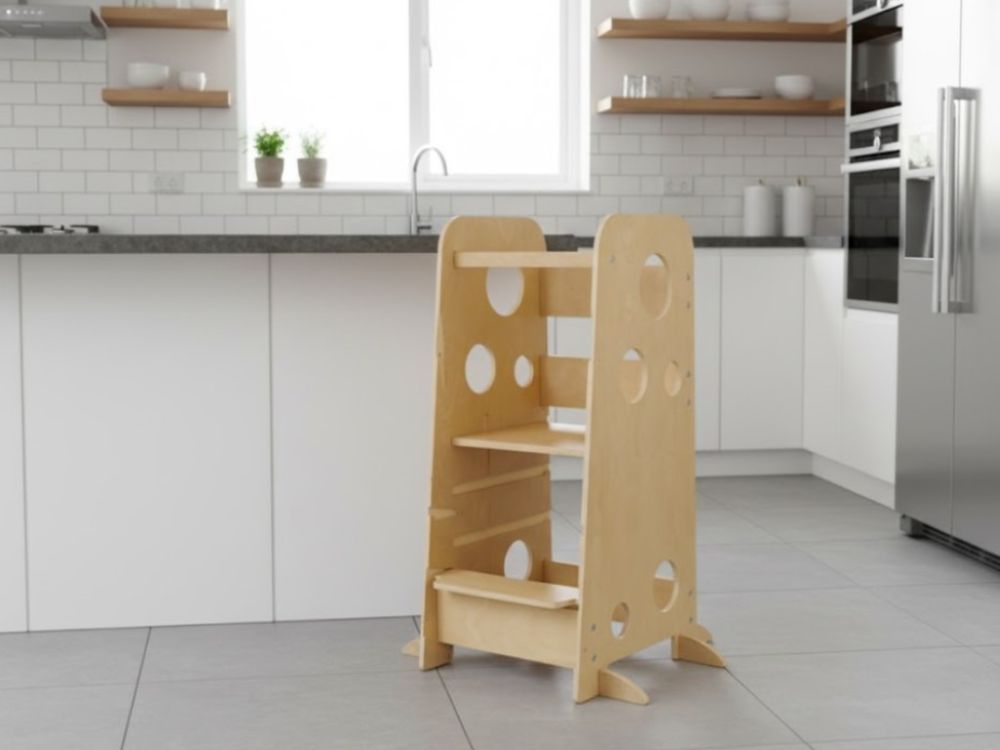 Dizajnová rastúca učiaca veža 3v1 je charakteristická svojim jedinečným a multifunkčným prevedením. Svojim širokým využitím (v kuchyni, jedálni, kúpeľni aj dielni) sa učiaca veža stáva nevyhnutným pomocníkom a zásluhou premysleného dizajnu aj krásnym setom detského nábytku - stolček + stolička.
