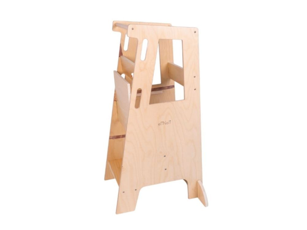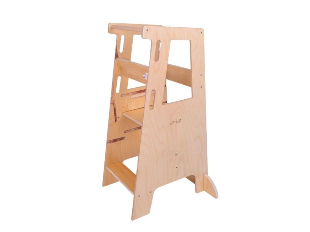 Vylepšená multifunkčná učiaca veža pre deti predstavuje nielen praktické a bezpečné schodíky (kuchynského pomocníka), ale aj set detského nábytku. Stačí učiacu vežu 3v1 položiť, premiestniť plošinu a razom sa premení na detskú stoličku so stolčekom. Vďaka rastúcej funkcii (plošine nastaviteľnej do 3 úrovní) sa učiaca veža prispôsobí každému dieťaťu a doslova s ním porastie. Pre väčšiu bezpečnosť je doplnená stabilizačnými nožičkami, podpornými doštičkami pod plošinou, zaistením stolčeka aj zábrany.