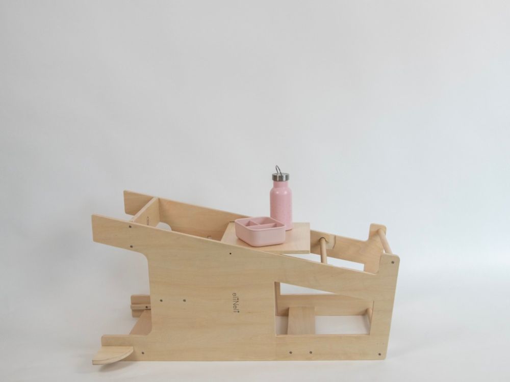 Vďaka nastaviteľným úrovniam plošiny rastie veža spolu s dieťaťom a zostáva bezpečnou oporou v každej fáze vývoja. Spája tri funkcie v jednom - učiacu vežu, stolček a stoličku. Jednoduchým premiestnením plošiny ju jednoducho premeníte podľa aktuálnej potreby dieťaťa.
