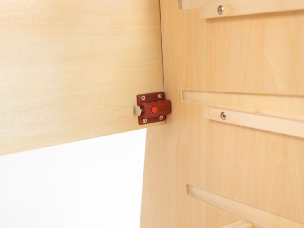Všetko drevo pochádza z udržateľne a eticky spravovaných certifikovaných FSC lesov, s certifikátom E0 zaručuje nula emisií formaldehydu z drevených častí, neobsahuje toxíny ani zápach. Bezpečnosť vašich detí zaistia - najvyšší stupeň opracovania, hladký povrch na dotyk bez nebezpečných výbežkov a prvky proti preklopeniu.