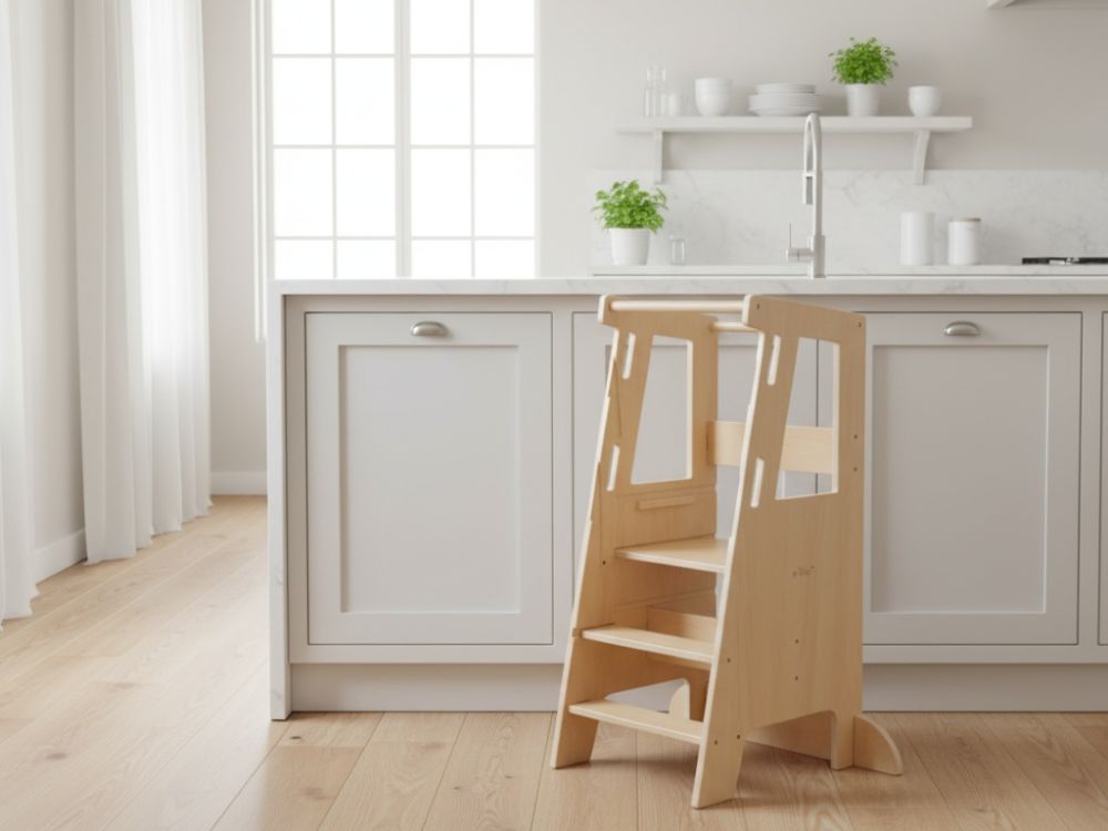 Multifunkčné využitie - vežu je možné jednoducho premeniť na stolček alebo stoličku, čím sa stáva praktickým pomocníkom v domácnosti. Odolné materiály a jednoduchá údržba zaisťujú, že veža zostane vždy čistá a ako nová.