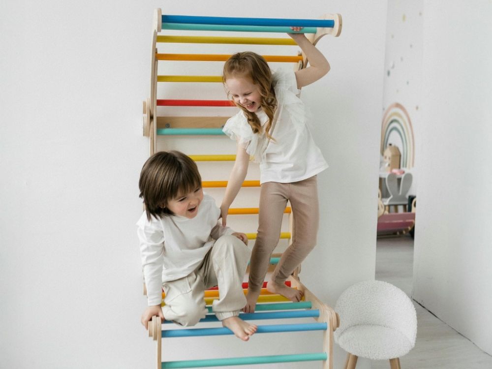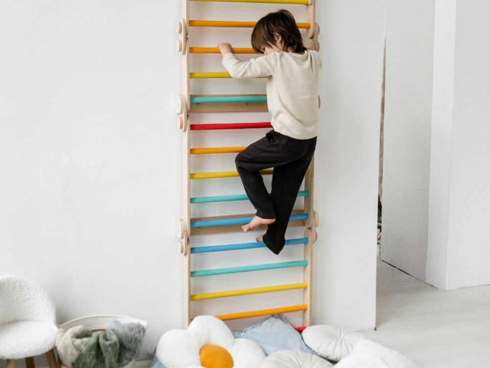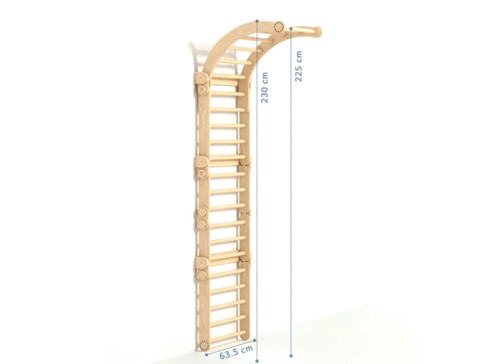 Sada na upevnenie preliezačky/rebrín k stene zaisťuje pevné a bezpečné uchytenie, ktoré umožňuje deťom bezpečne sa šplhať, balansovať a hrať sa bez rizika prevrátenia.