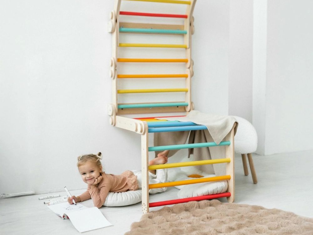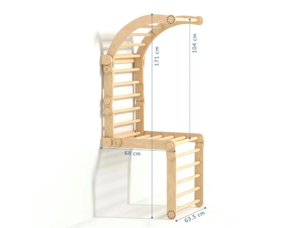 Rebriny pripevnené touto sadou sú vhodné pre deti od 1 roka a podporujú rozvoj hrubej motoriky, koordinácie a logického myslenia. Produkt sa vďaka neutrálnemu prírodnému dizajnu hodí k prírodnej aj dúhovej preliezačke/rebrinám.